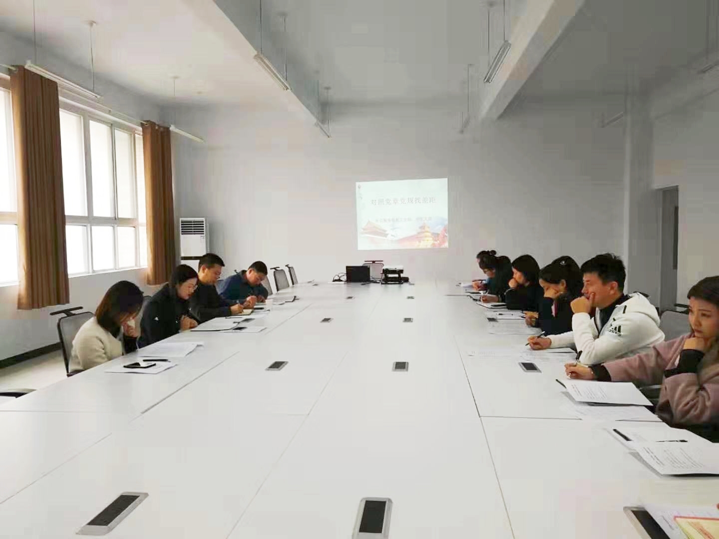 根据学院主题教育活动安排,11月20日下午,社会服务系在1号楼208会议室召开对照党章、《准则》、《条例》、岗位职责找差距专题会议。会议由社会服务系党总支书记刘兆坤主持,工会主席石国河出席、社会服务系全体干部和党员参加。