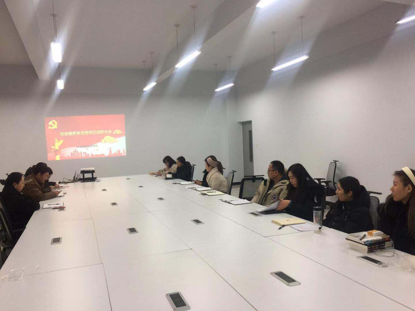 2019年12月24日下午,pp电子游戏平台网站社会服务系党支部在1号楼208室召开2019年社会服务系支部书记述职大会。pp电子游戏平台网站社会服务系党总支书记刘兆坤、学工支部书记段会利、教工支部书记魏俊巧、和社会服务系全体党员参加,会议由社会服务系党总支书记刘兆坤主持。