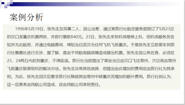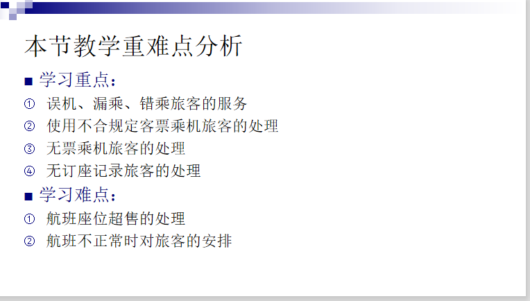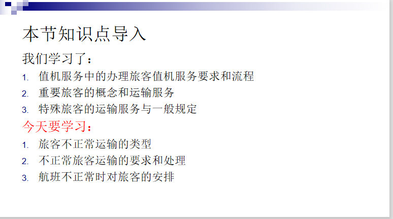 现以第四章机场值机服务中第四节旅客运输不正常服务这一节的网络课堂授课过程为例,作以分享。