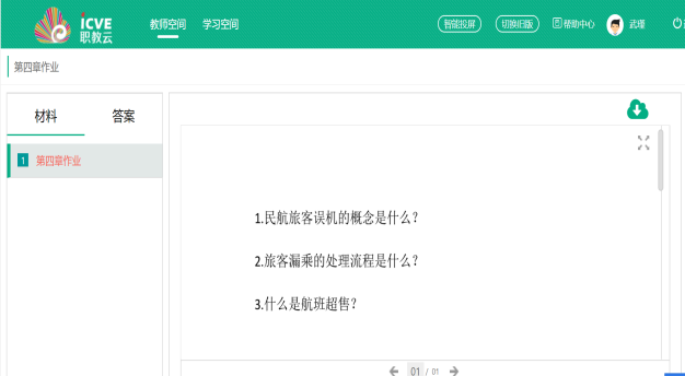 为了使民航地勤服务的网上授课内容更加充实生动,我还在授课节奏上与内容上进行不断调整,目前采用的方式是在课中结合职教云国家资源库课程学习与教师讲述讲解相结合,保证教学质量和效果。