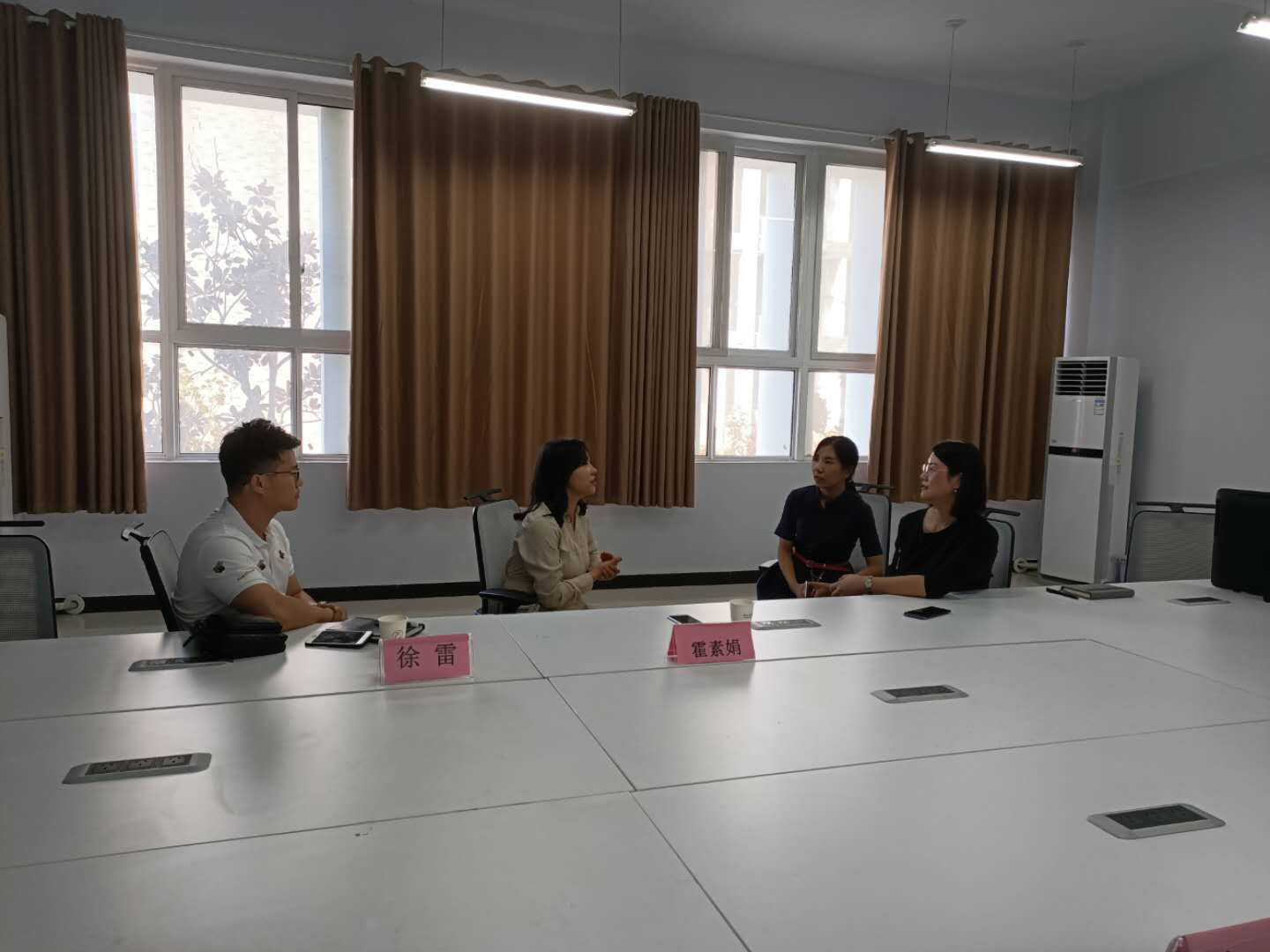 2020年9月17日下午,信阳文新茶叶有限责任公司郑州分公司霍素娟总经理、人力资源部经理徐雷经理来我院开展校企合作交流工作。现代服务学院李俊副院长、休闲教研室魏俊巧主任、休闲教研室郑蕊老师、杨茜老师参加活动。首先双方对18级学生赴信阳文新茶叶有限责任公司郑州分公司实习事宜进行探讨;其次就学生实习实践基地建设、探索校企合作新模式、共同培育人才等相关问题达成共识。