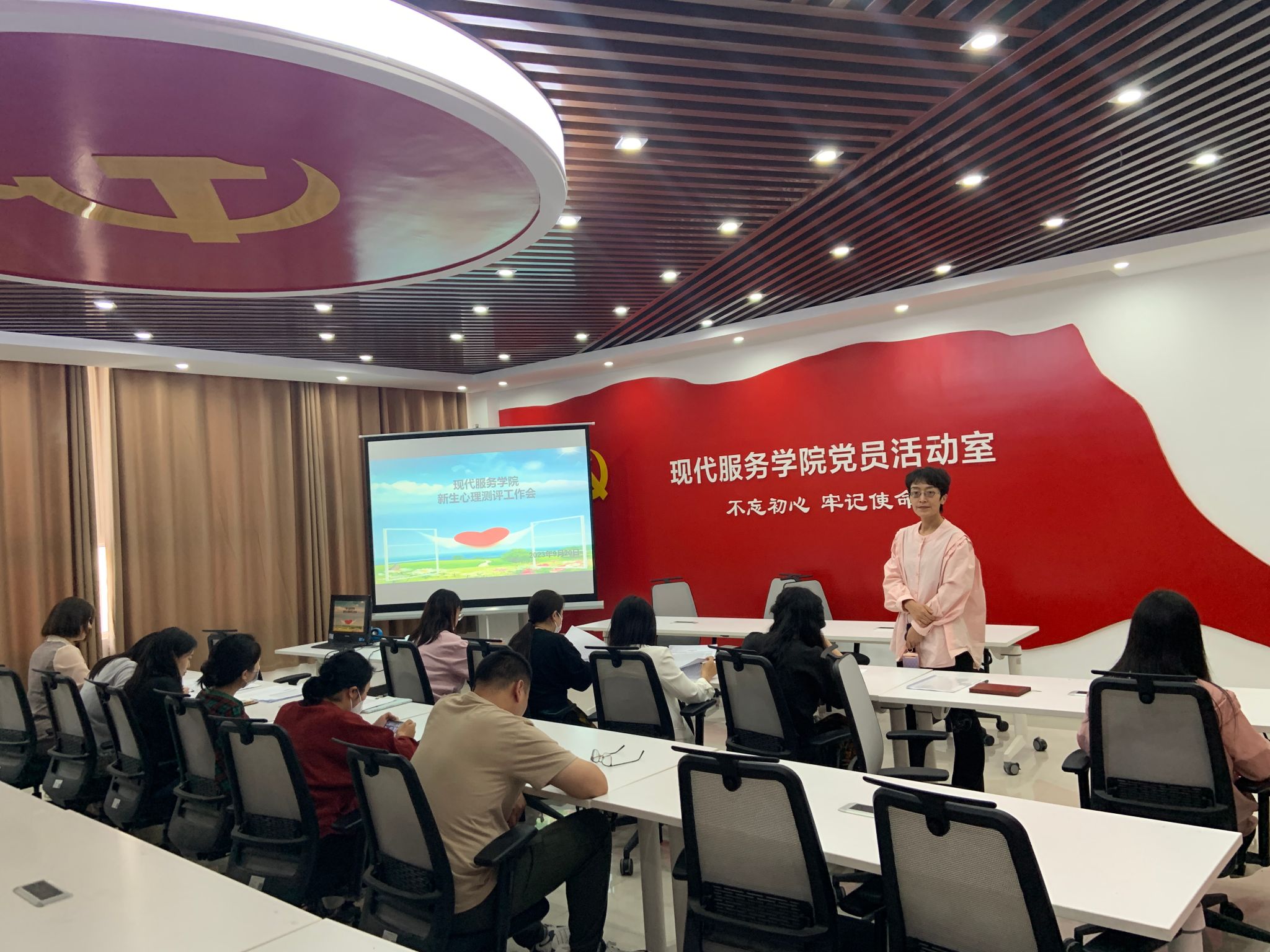 为全面了解现代服务学院2023级新生的心理健康状况,引导学生们更快更好地适应大学生活。按照pp电子学生工作的工作部署,2023年9月20日,我院组织辅导员和班主任召开新生心理测评工作会,会议由我院党总支副书记岳正阳主持。