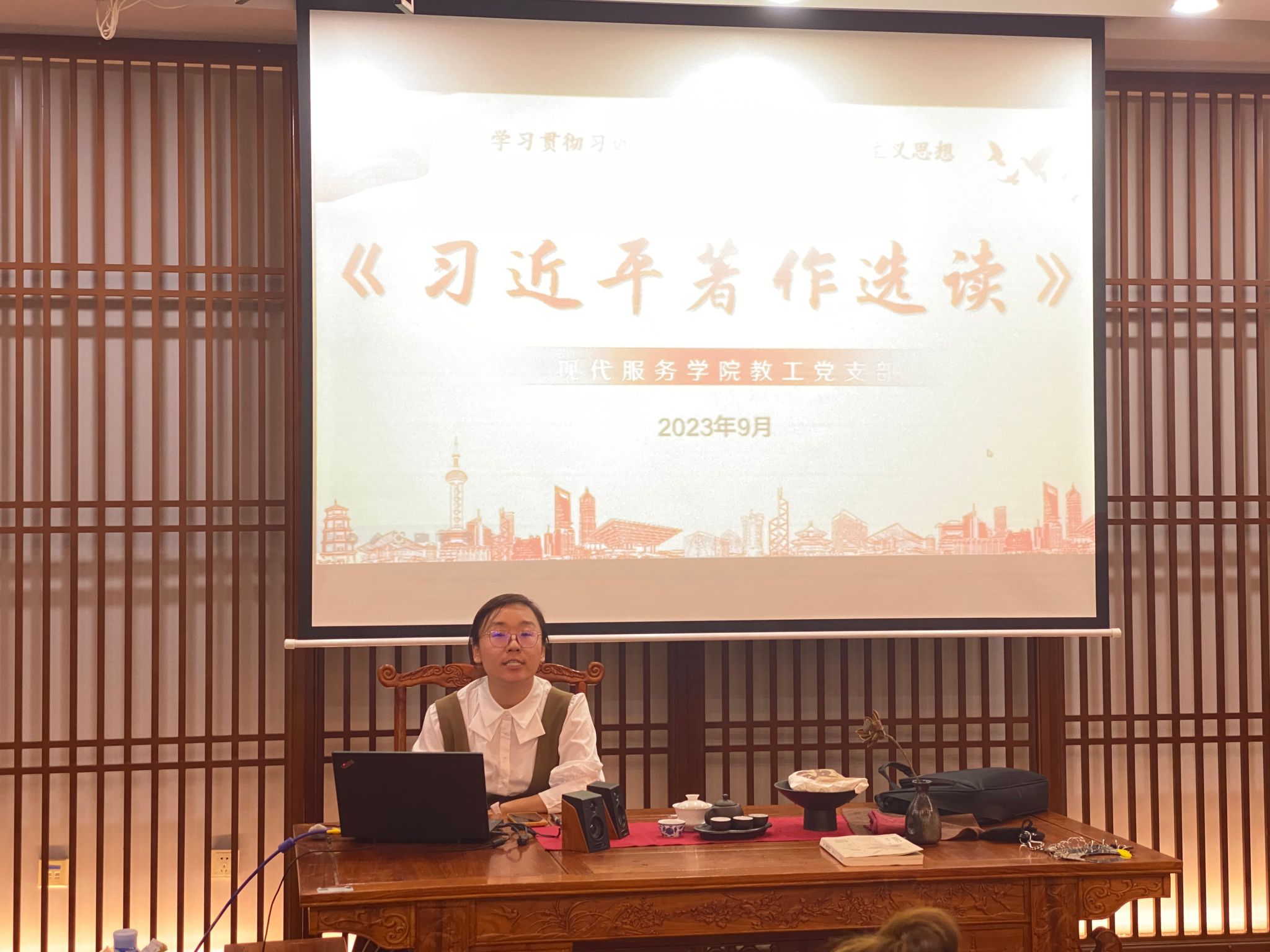 2023年9月27日下午,现代服务学院教工党支部在1A305实训室组织开展学习贯彻新时代中国特色社会主义思想主题教育集中学习。此次学习围绕精读通读《习近平著作选读》,先后学习了第一卷中《扣好人生的第一粒扣子》、《跟着总书记一起重温这位伟人的话》、《增强忧患意识,做到居安思危》和《推动文明交流互鉴需要秉持这些原则》这四个篇章。