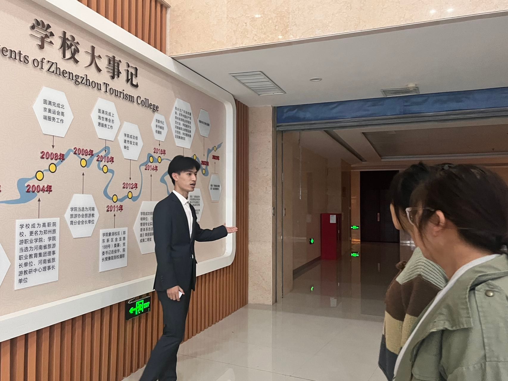 2023年10月9日下午5:30,现代服务学院“接班人”讲解队中的吕鑫、周宇涵、吴心宇、付和瑞、梁澳波五名同学为现代服务学院23级新生们提供了校史馆的参观讲解服务。