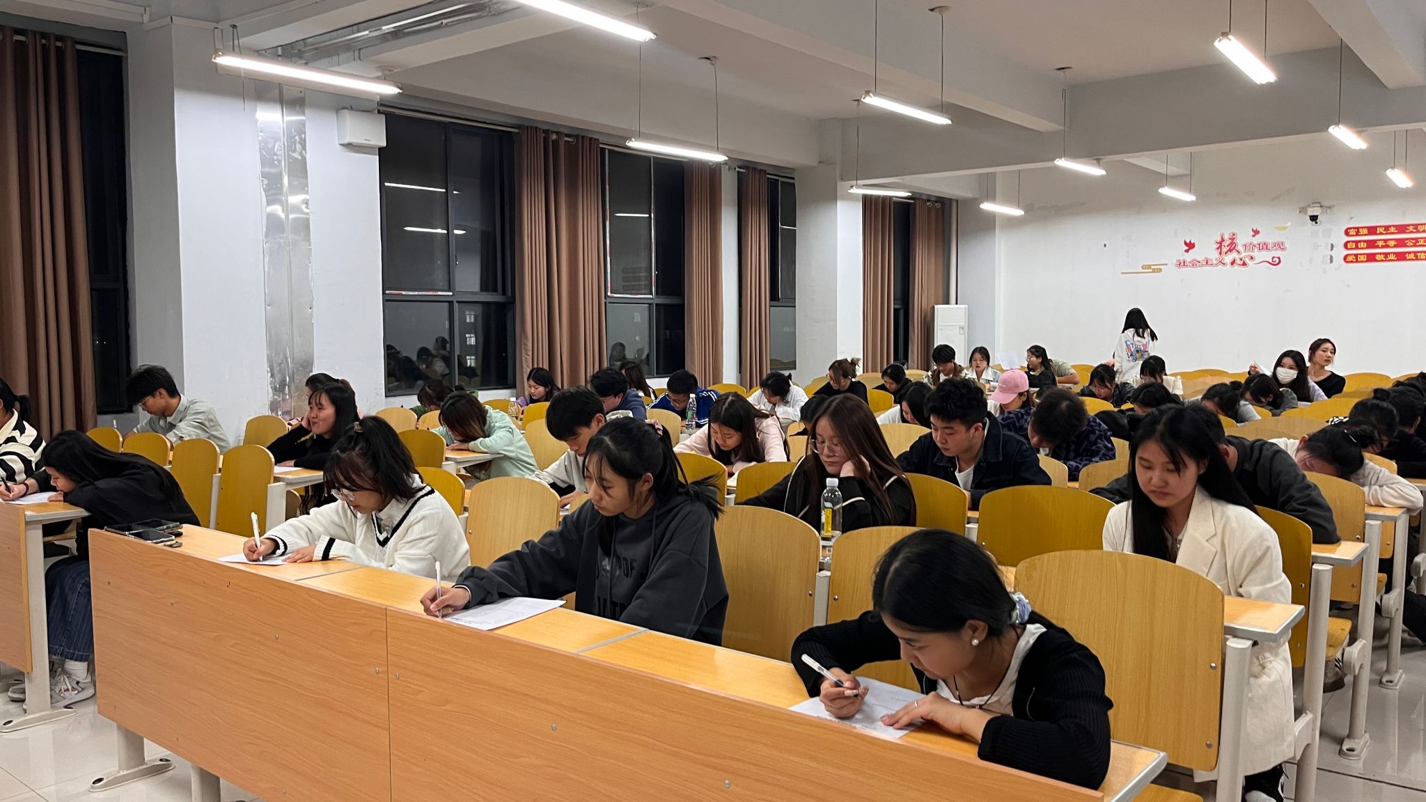 笔试过程中,各部门负责人严格强调考试规则及考风考纪,严格监考、维持考场秩序,杜绝任何作弊现象,保证笔试的公平公正。同学们也态度端正、深思熟虑、认真作答,真正做到端正考风、严肃考纪。本轮笔试本着“公平、公正、透明”的原则,采取闭卷考试的形式,对参考同学的政治素养、逻辑思维和论述能力等方面进行深度考察,在“考”与“思”之间让同学们更加深刻地了解团总支的工作内容。