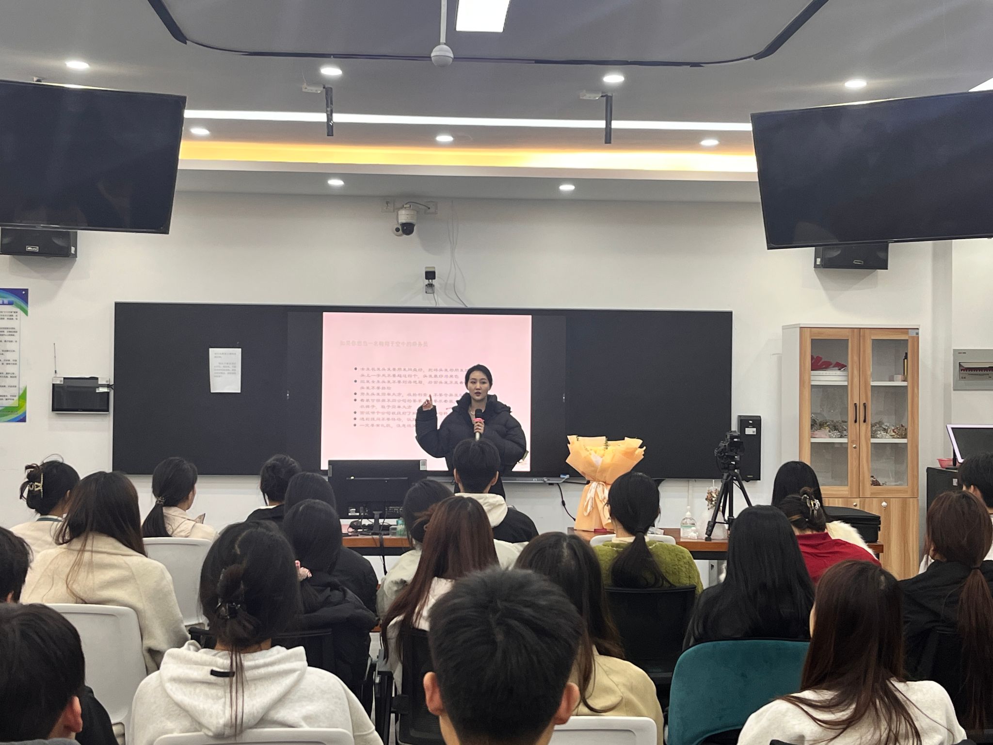 没规划的人生叫拼图,有规划的人生才叫蓝图。 富丽存学姐结合自己在中国南方航空公司的亲身经历和实践经验告诉同学们:“思维要开阔,自我教育才是最有效的教育。在人生的道路上,就业引航不可或缺。前进路上,我们要做到知行合一,规划未来,做有规划的智者。”
