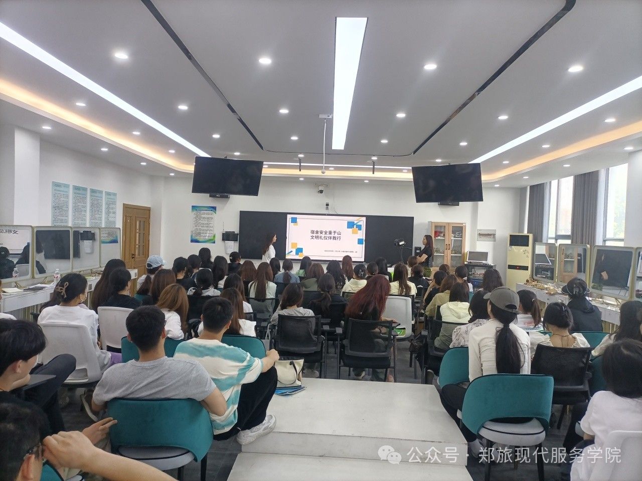 为进一步落实学校安全教育管理工作,帮助学生树立宿舍安全意识和养成良好的卫生习惯,引导同学们养成良好的行为习惯,同时促进校园的和谐稳定,共建安全文明宿舍,现代服务学院于本周在1A教学楼开展“宿舍安全重于山·文明礼仪伴我行”主题班会。