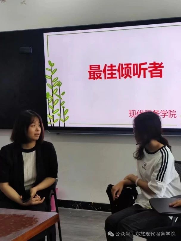 为缓解学生压力,调节学习氛围,关注学生心理健康问题。现代服务学院与2024年5月21日,在1A教学楼404教室,举办以“最佳倾听者”为主题的心理活动。该活动以赵爽老师为心理指导老师,进行全过程指导。23级学生参与活动。