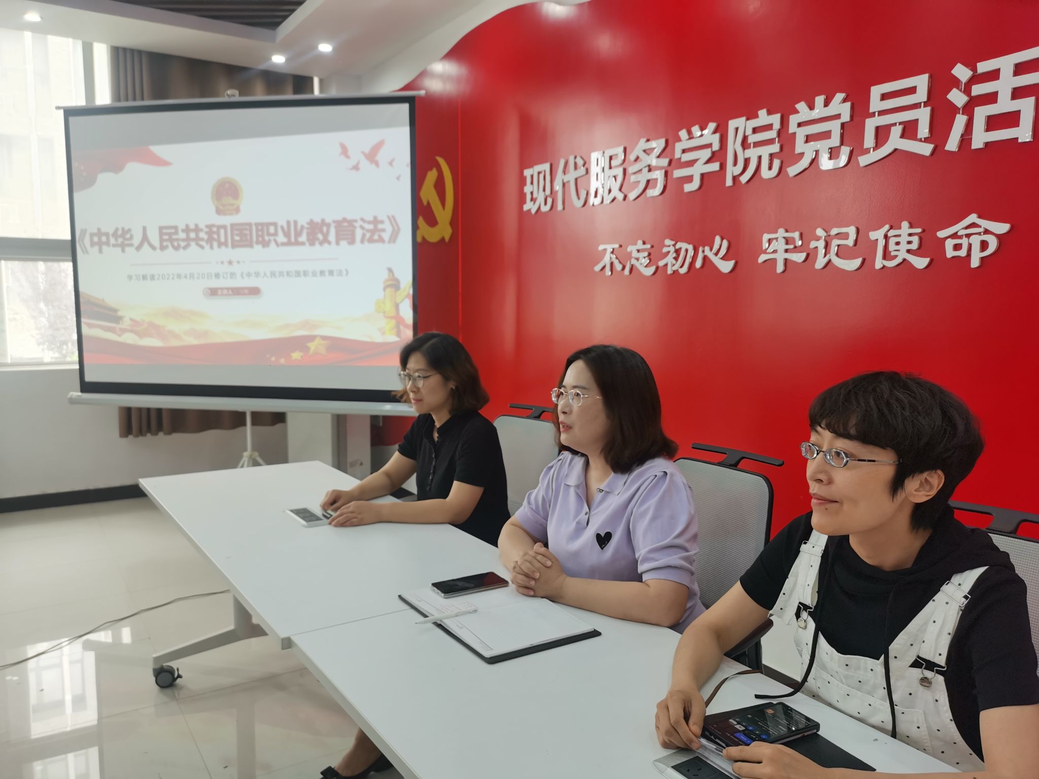 为深入贯彻落实全国职业教育大会精神,做好新职业教育法普法工作,全面准确解读职业教育法,持续推进依法执教、依法办学,扎实推动职业教育高质量发展,5月29日,现代服务学院于1A208召开2024年年度全体教职工学习《中华人民共和国职业教育法》。会议由党总支书记白娜主持,定琦副院长、岳正阳副书记出席会议,全体教职工参加会议。