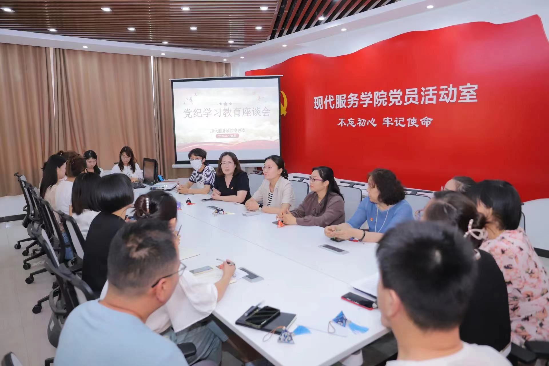 6月6日,现代服务学院党总支组织全体党员干部在1A208召开党纪学习教育主题座谈会,进一步落实党中央关于党纪学习教育的决策部署,贯彻校党委关于党纪学习教育工作要求,推动学院党纪学习教育走深走实。现代服务学院党总支书记白娜主持会议,pp电子游戏平台网站纪委书记詹晓娅参加座谈并讲话。