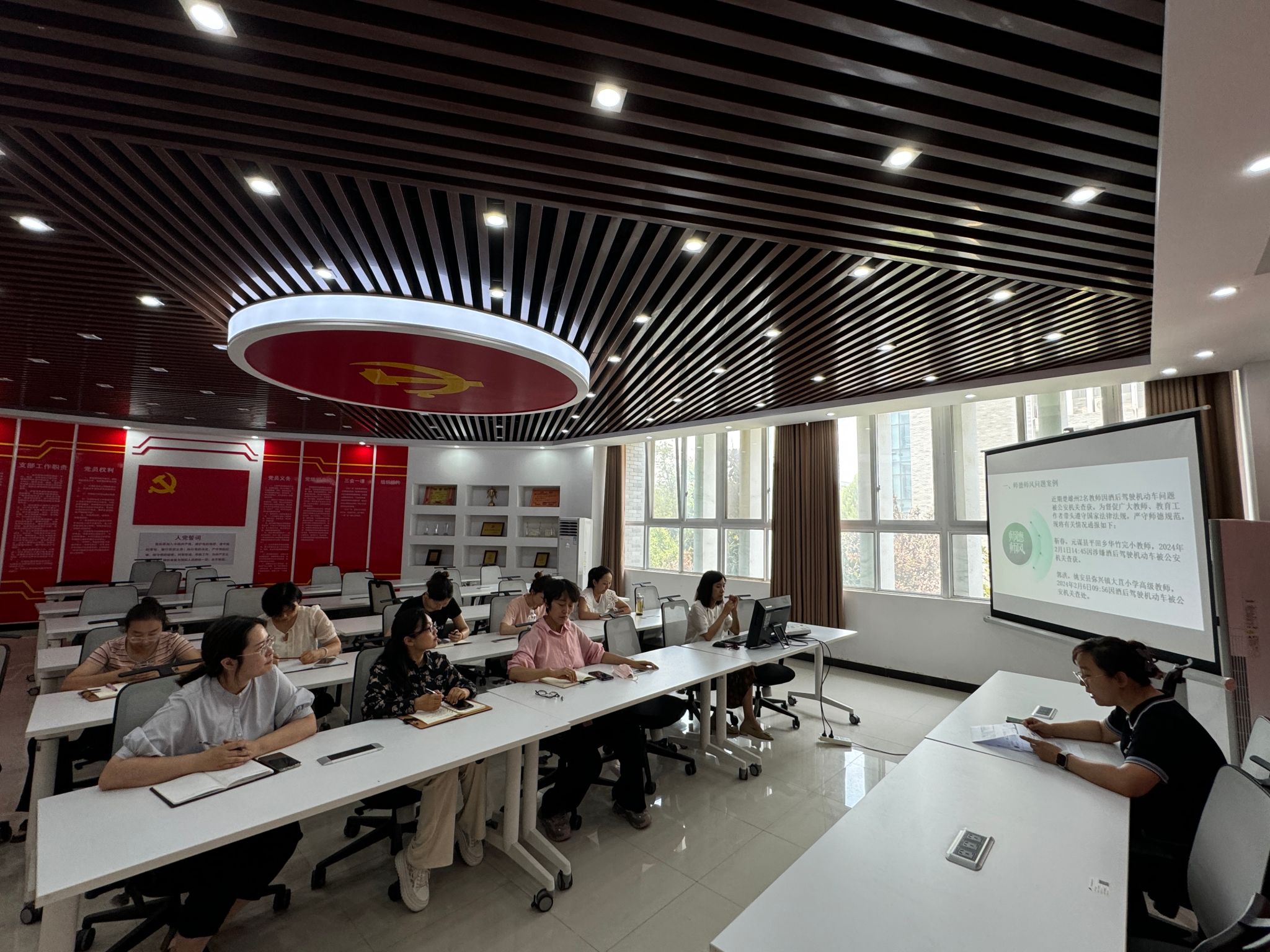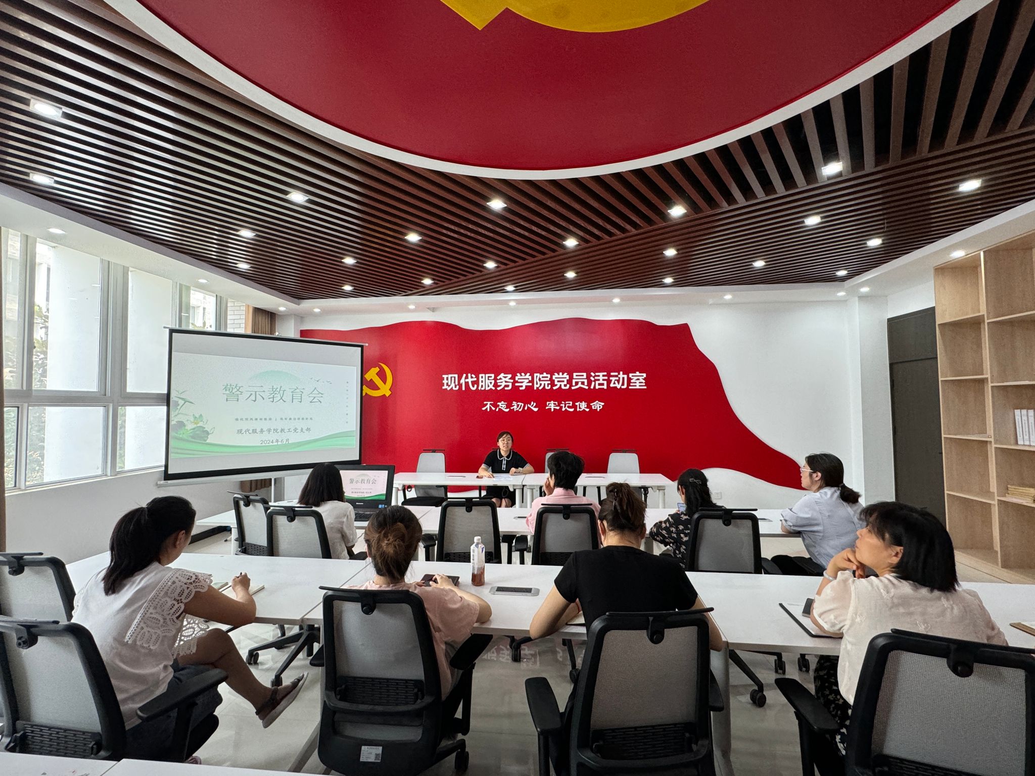 为进一步加强党风廉政教育,筑牢思想道德防线,按照党纪学习计划要求,引导广大党员自觉遵守党的纪律, 坚定理想信念,6月27日现代服务学院在1A208召开“强化党风廉政教育,筑牢廉洁思想防线”警示教育会。会议由现代服务学院教工党支部张莹主持,全体教工党支部教师参加。
