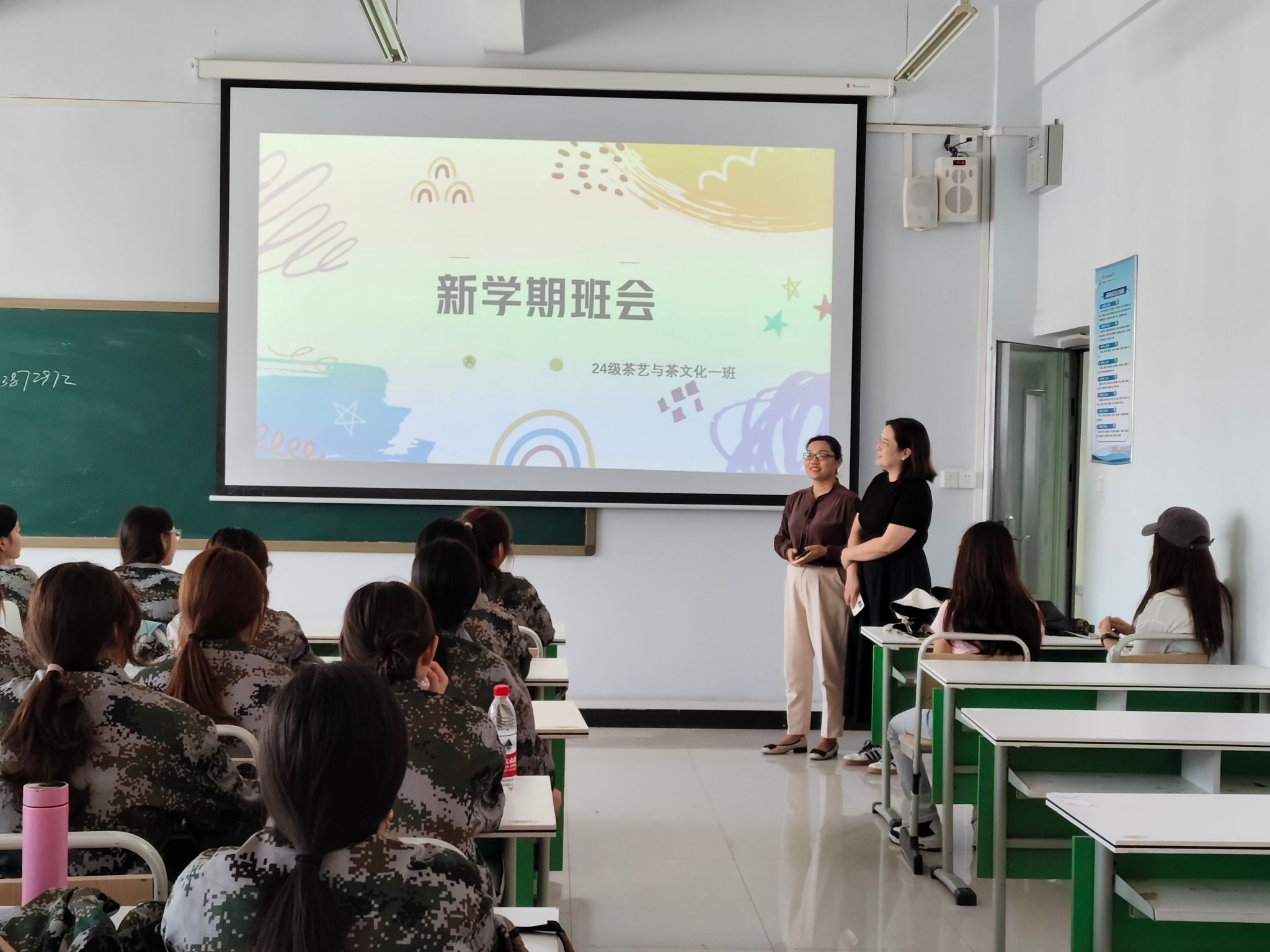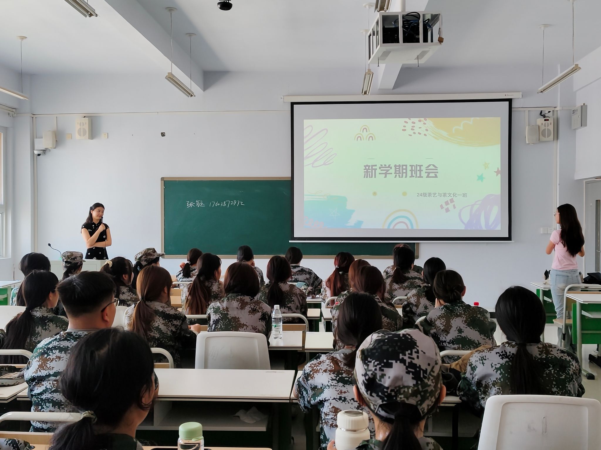 为帮助2024级新生快速适应大学生活,快速完成角色的转变、增进彼此的了解,增强班级凝聚力,现代服务学院2024级各班级于9月6日下午在1A教学楼开展新学期“开学第一课”主题班会。