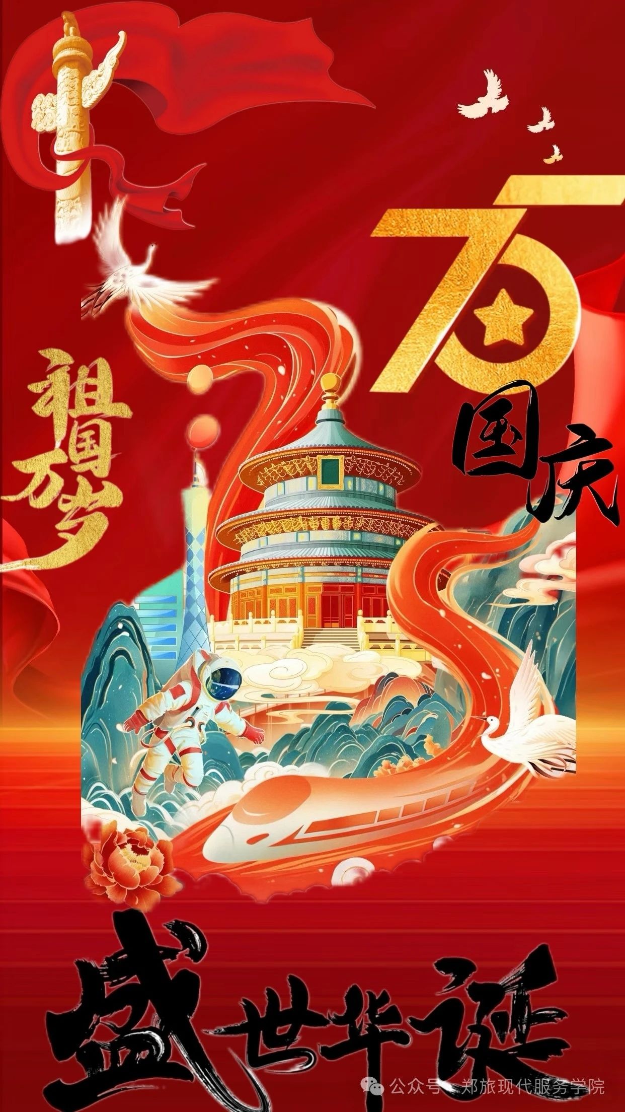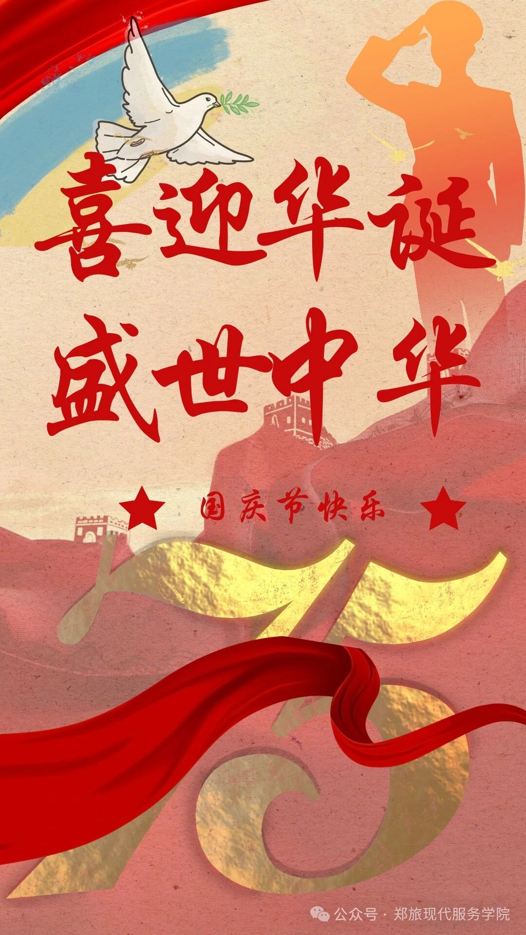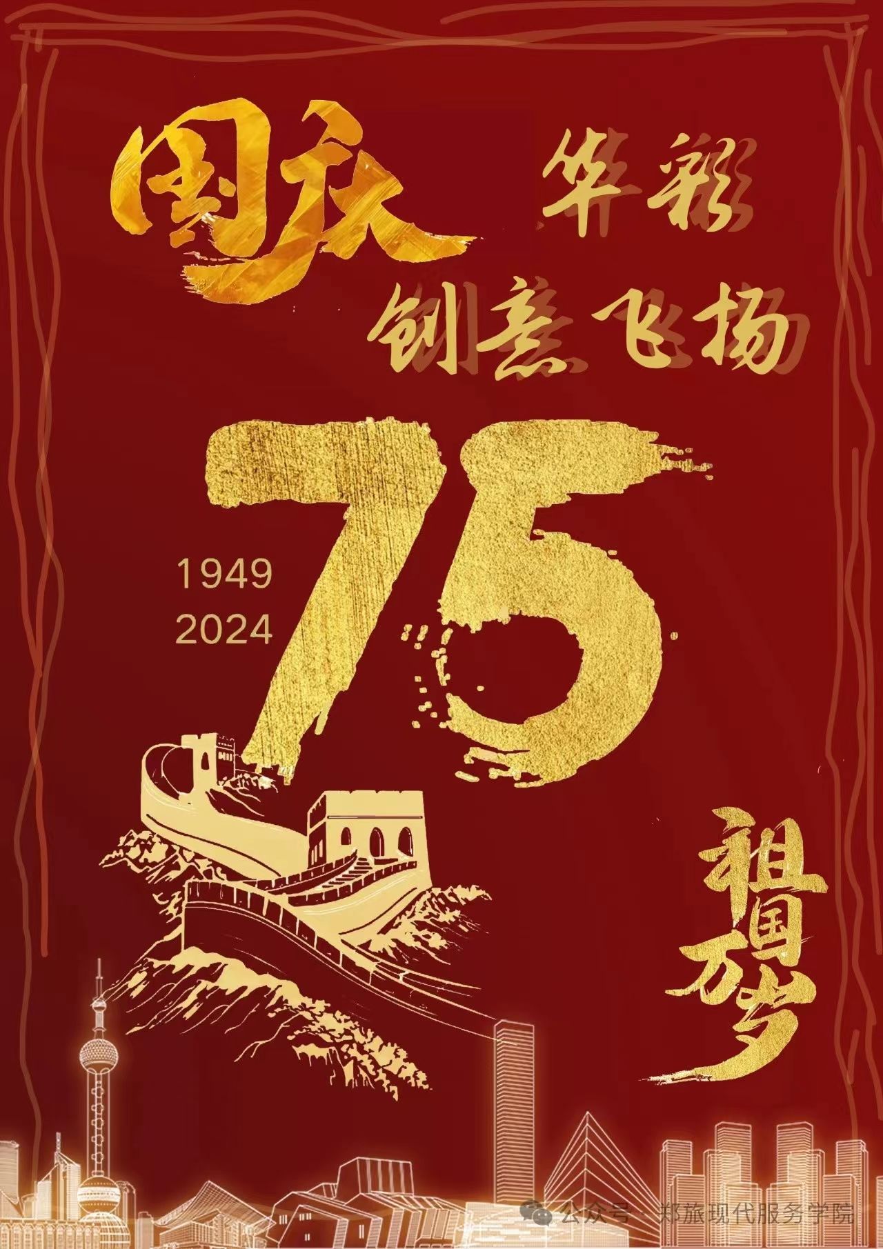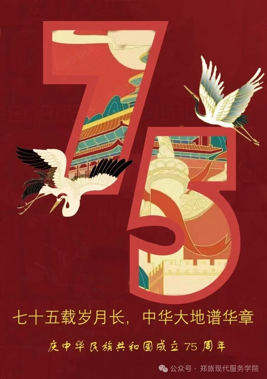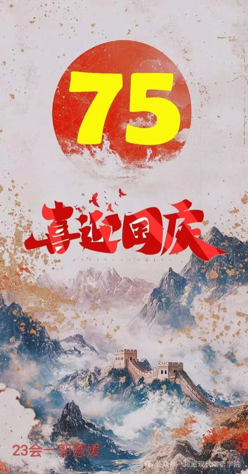 为庆祝国庆佳节,激发学生的爱国情怀和创造力,9月27日—9月29日,现代服务学院通过线上PS的方式举办了一场以“国庆华彩 创意飞扬”为主题的海报设计大赛。此次大赛旨在庆祝中华人民共和国成立75周年的重要时刻,同时激发学生的爱国情怀和创意思维,通过海报这一艺术形式表达对祖国的热爱和祝福。
