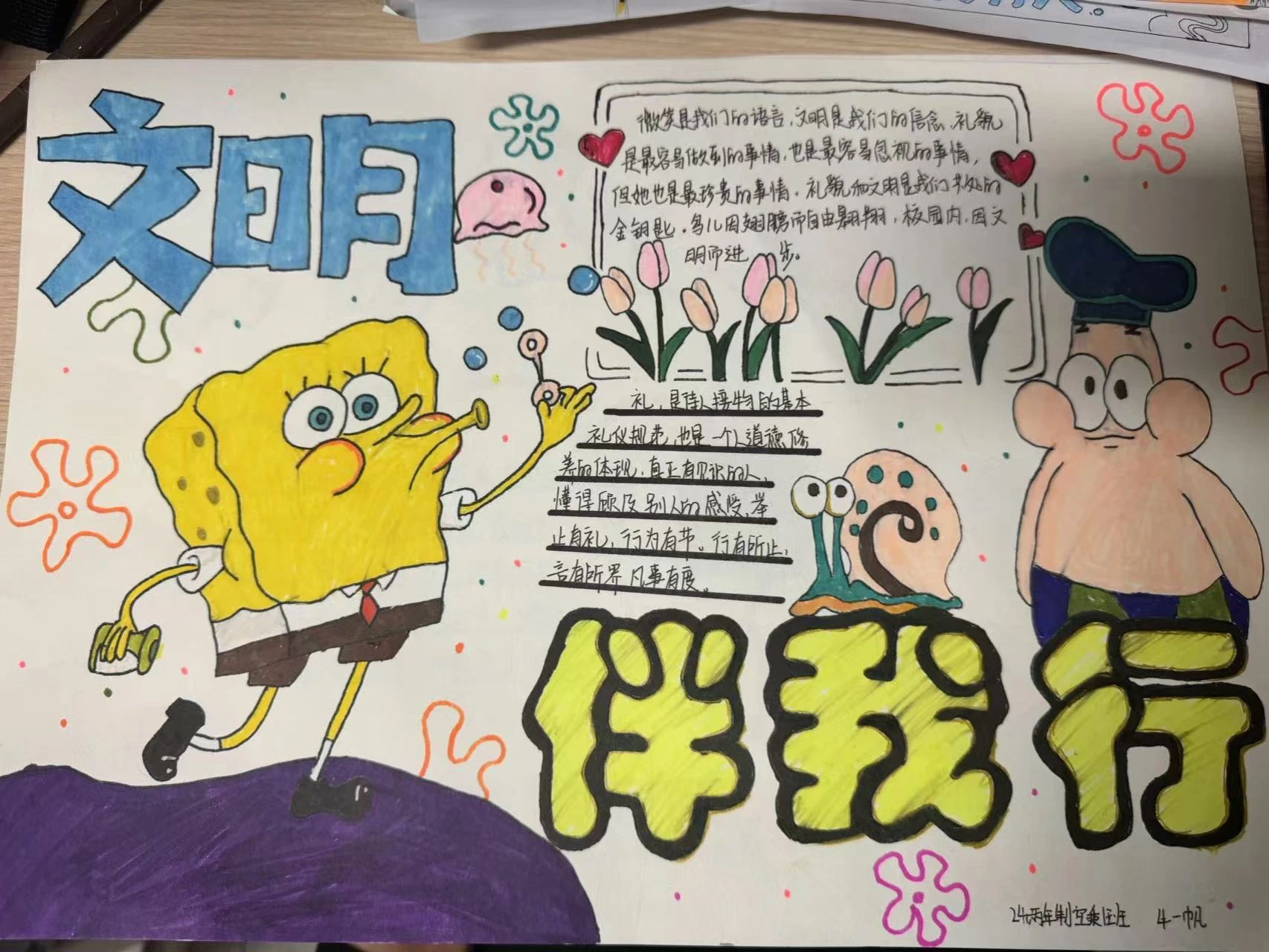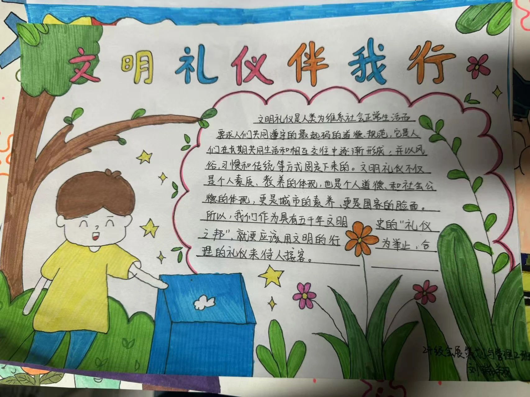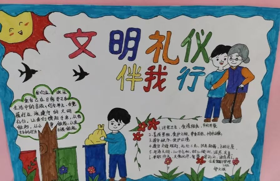 此次活动圆满成功,异彩纷呈的作品不仅给我们带来了视觉美宴,更传递出了文明礼仪带来的的正能量,成为校园里一道亮丽的风景线。我们坚信,在全体师生的共同努力下,会逐渐形成人人讲文明话,做文明事,当文明人的良好风尚,让文明礼仪之花在整个校园绽放。
