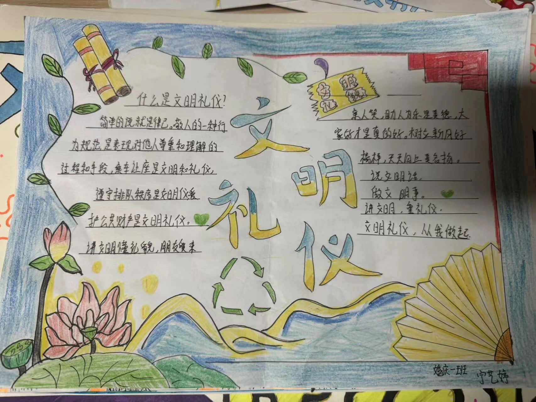 为推进文明校园建设,引导学生深入理解文明礼仪的内涵,绘出礼仪情景,讲述礼仪故事,现代服务学院于10月21日至10月25日举办“‘绘’礼仪,讲文明”主题黑板报和手抄报活动。