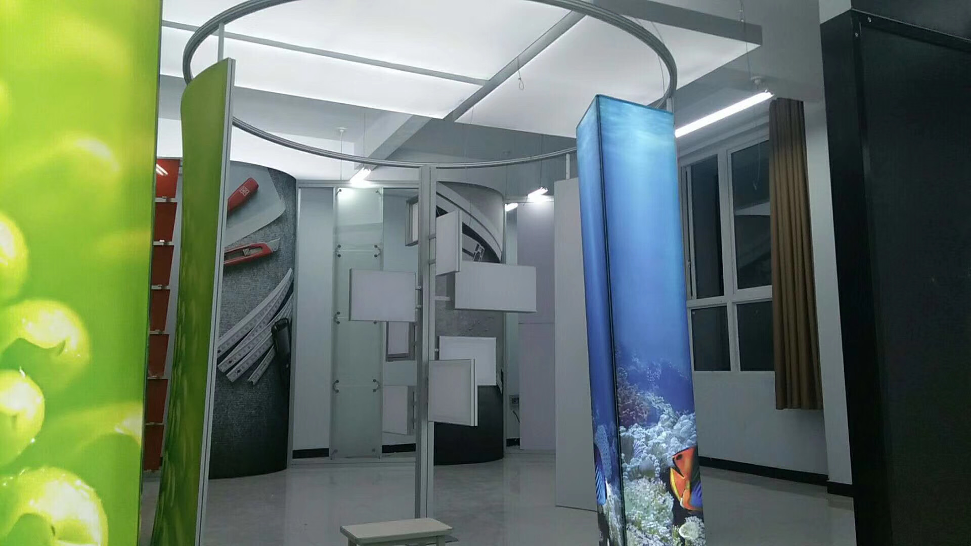 特装展位实训室应面积大于120平方米,配备各种型材、二层展台、普通灯箱、3D立体灯箱台、商务洽谈区、树形指示牌、更衣室、安全帽、安全梯、多媒体教学设备(计算机、投影仪等)、空调设备,同时满足实训所需要的各项目技能操作工具。用于展台搭建、会展概论、会展策划等相关课程的实训教学。