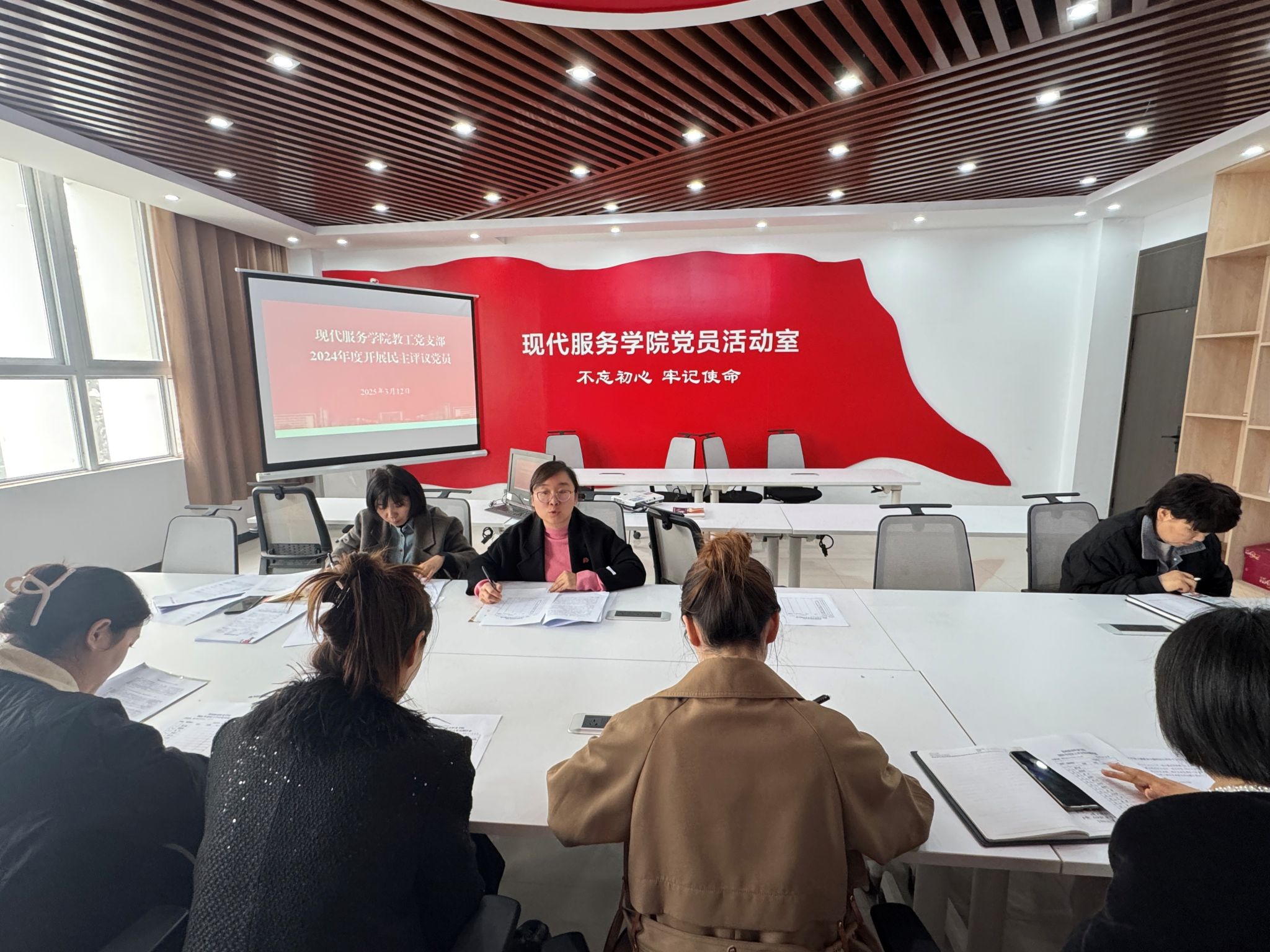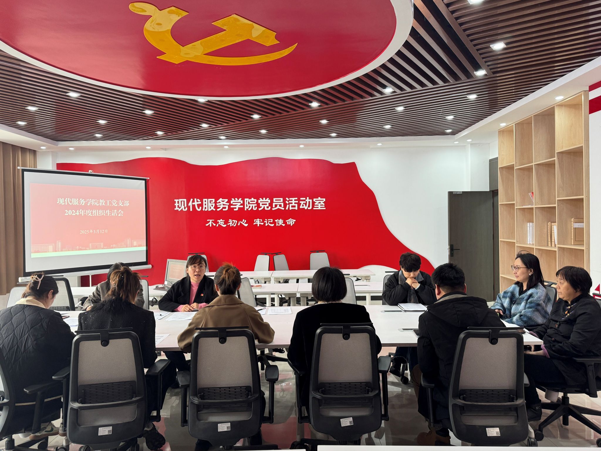 为全面强化基层党组织政治引领作用,提升队伍凝聚力,现代服务学院教工党支部于2025年3月12日在1A208会议室召开2024年度组织生活会及民主评议党员工作会议。本次会议由党支部书记张莹同志主持,全体支部党员共同参与。
