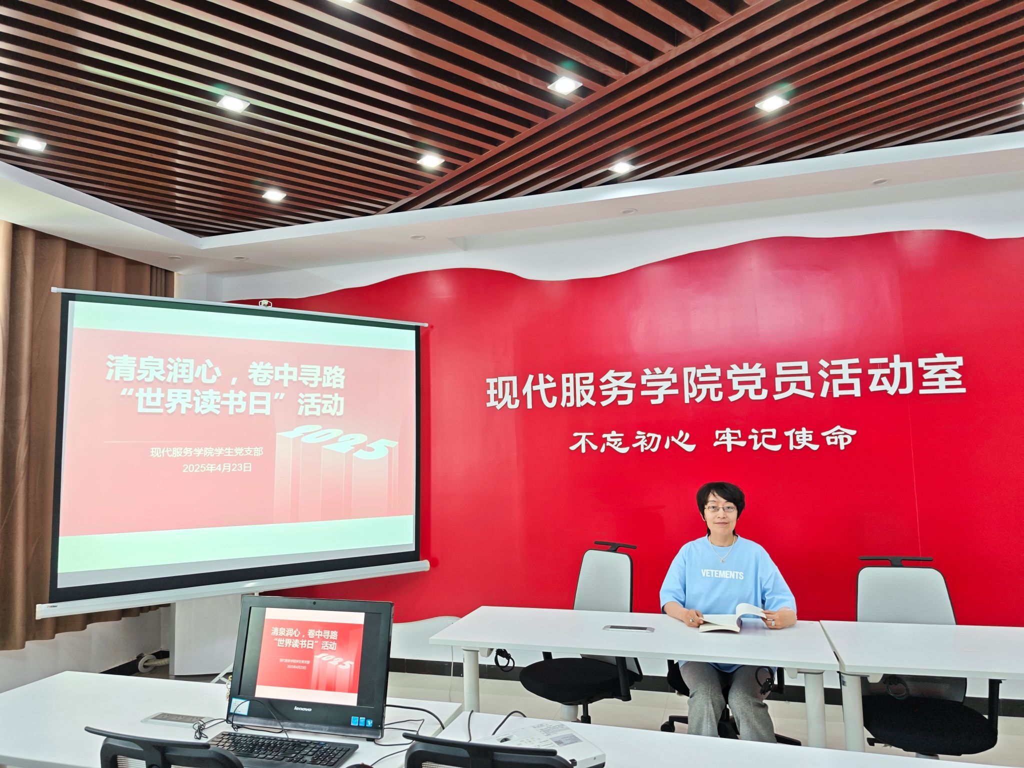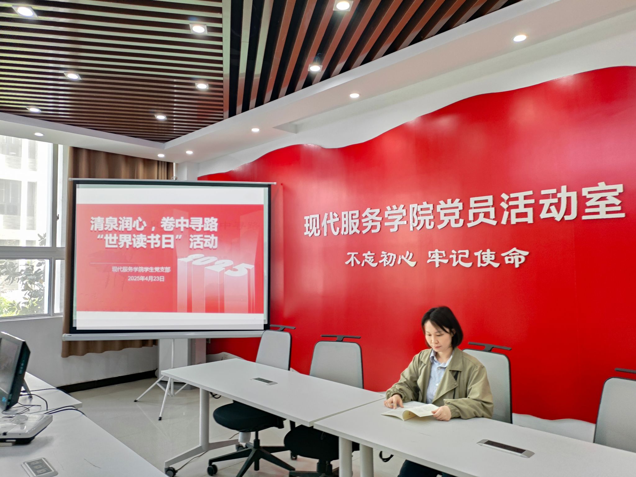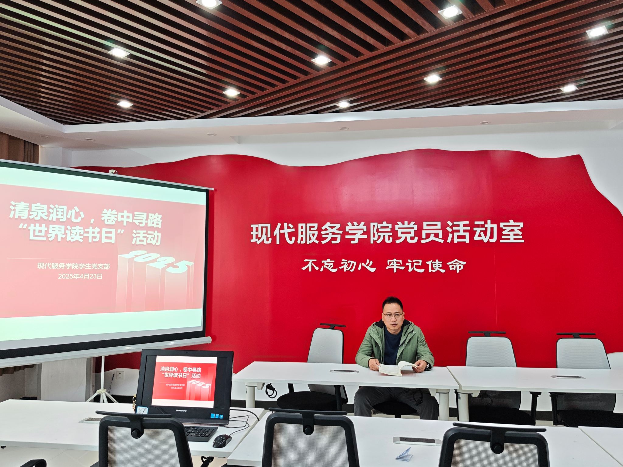 为深化支部党员的理论素养与理想信念,推动形成“学思用贯通、知信行统一”的学习氛围,激发党员同志的阅读热情。4月23日,现代服务学院学生党支部举办了“清泉润心,卷中寻路”世界读书日主题党日活动。