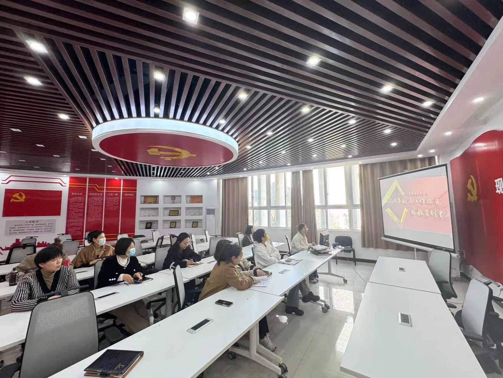 为进一步学习贯彻落实全国两会精神,推动学院党建与事业发展深度融合,深刻领会习近平总书记在全国两会期间的重要讲话精神,进一步统一思想,凝聚力量,推动学院各项工作再上新台阶。2024年3月20日,现代服务学院教工党支部在1A208召开了全面学习宣传贯彻全国两会精神党员大会。会议由现代服务学院教工党支部书记张莹主持,全体支部党员参加。
