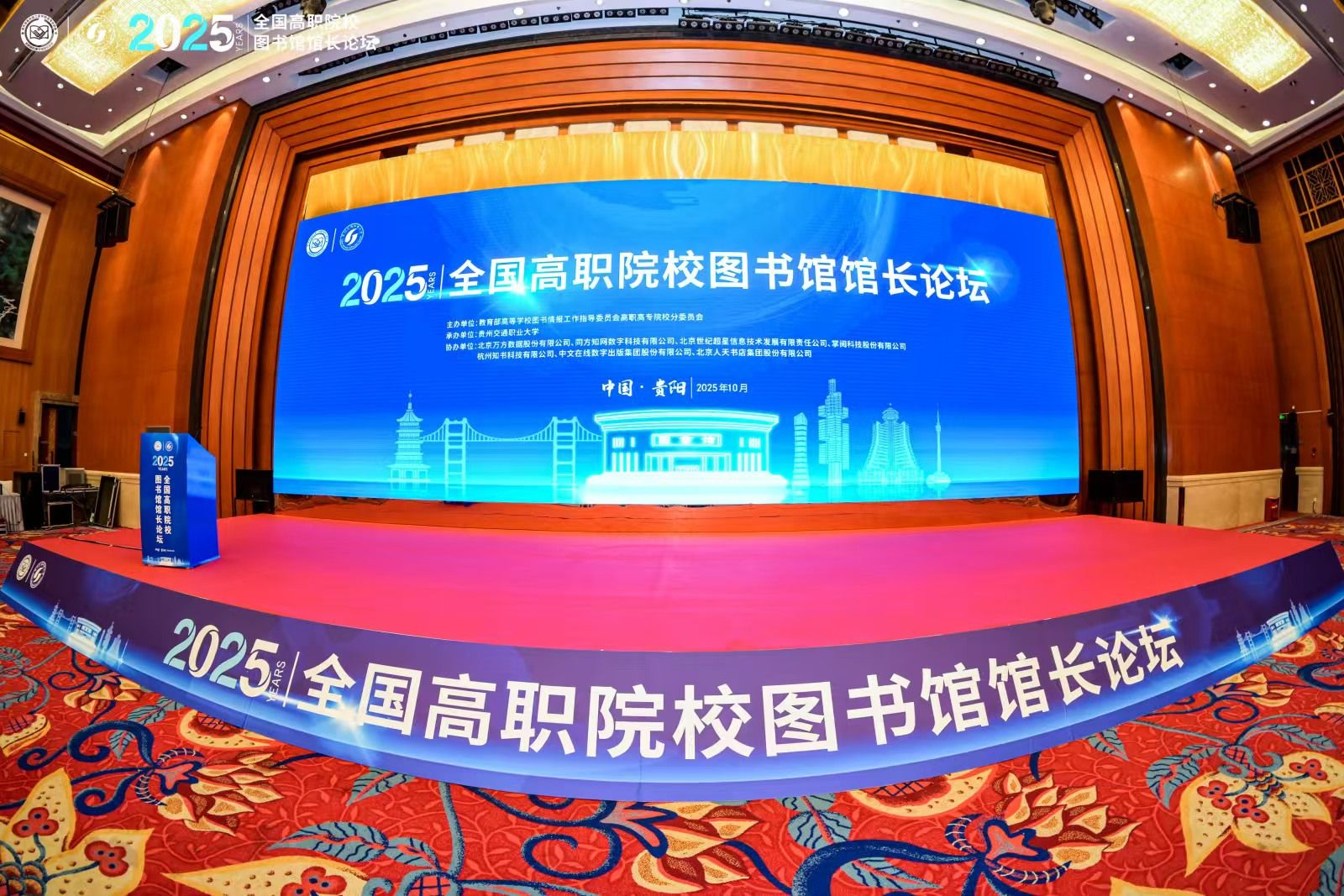 10月21日至24日,由教育部高等学校图书情报工作指导委员会高职高专院校分委员会主办、贵州交通职业大学承办的“2025年全国高职院校图书馆馆长论坛”在贵阳顺利召开。pp电子游戏平台网站图书馆馆长胡志霞应邀参会,与来自全国27个省、自治区、直辖市的158所职业院校图书馆馆长、专家学者及企业代表齐聚一堂,围绕“人工智能时代高职院校图书馆的使命与未来”这一核心主题展开深度交流与探讨。