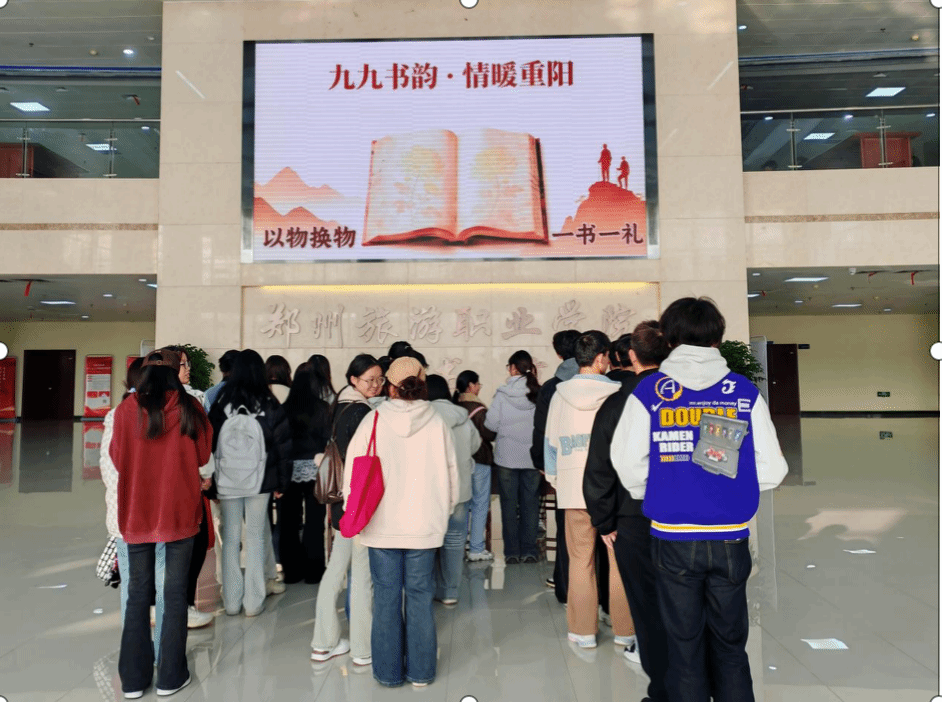 活动现场特别设置了以旧书换新书环节,图书馆精选200册馆藏剔旧过期刊,供学生以“以一换一”的形式进行交换。所得图书将全部捐赠给学校退休教职工,传递书香与温情。与此同时,“重阳知识小问答”吸引了众多学生踊跃参与,大家答题、留言、寄语,场面温馨。