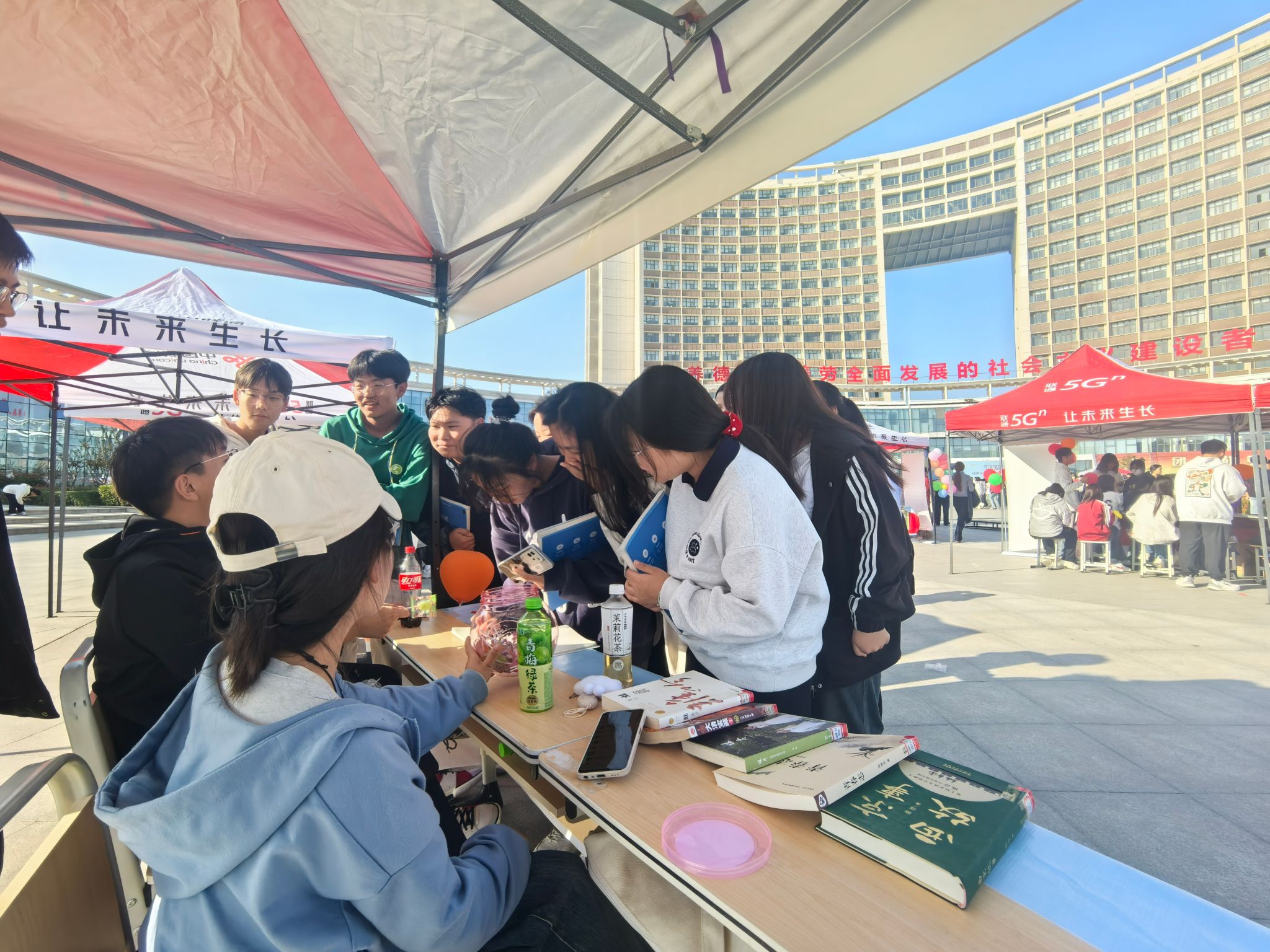为了吸引更多的 2024 级新生加入读书社,图书馆阅览部全体员工齐心协力、各显其能。他们不仅在各个阅览区积极宣传,还活跃在学校各种大型活动现场,向新生们介绍社团的魅力与价值。