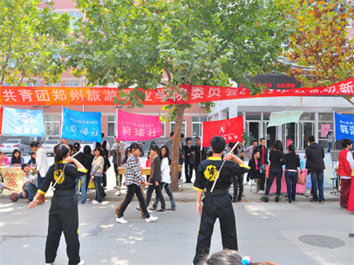 招新活动开展时,校园插满了五颜六色的社旗,整个招新会场人山人海,各个社团的社长将自己社团的特点、上课时间、一学年的社费和上课等注意事项对11级的新生们介绍清楚。院团委书记毛艳和社团部李立功等老师亲临现场,指导招新工作。