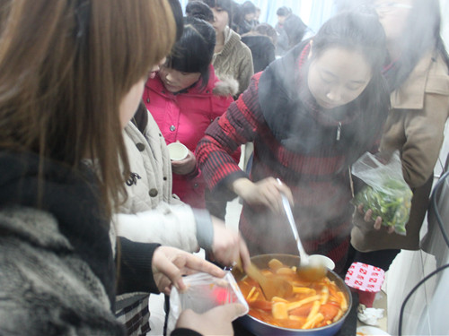 活动开始之前,韩语社社长先向大家介绍了关于韩国传统美食的信息,让大家对韩国美食有了初步了解。接着,由社长带领大家一起在现场动手制作韩国美食。社员们分工协作,一些社员负责准备食材,另一些社员负责动手制作,社员们积极参与,忙得不亦乐乎。在社长的认真指导下,社员们做好了韩国特色美食辣炒年糕和寿司,并邀请在场的外宣部团干一同品尝。