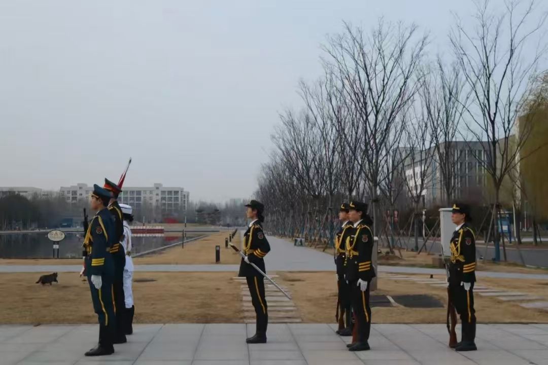 晨光初绽,清风送暖。伴随着激昂嘹亮的出旗曲,pp电子国旗护卫队队员身姿挺拔、精神抖擞,迈着铿锵有力的步伐,护送五星红旗走向升旗台。队员们目光坚毅、步履整齐,充分展现了pp电子青年听党话、跟党走的坚定信念与青春担当。