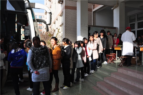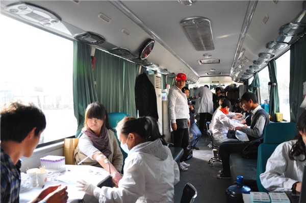 我院招募了407名学生、50余名志愿者参加了本次活动。献血开始,同学们就排起了长长的队伍,在河南省血液中心工作人员和志愿者的引领下,同学们开始填表、体检、化验和抽血。院团委学生干部为等候献血的同学在一楼多媒体教室播放了电影,整个活动过程井然有序。从献血同学的表情中我们看到了他们的自豪与快乐,为社会做有意义的事,使他们体会到了心灵的愉悦。