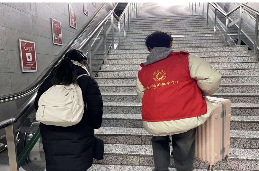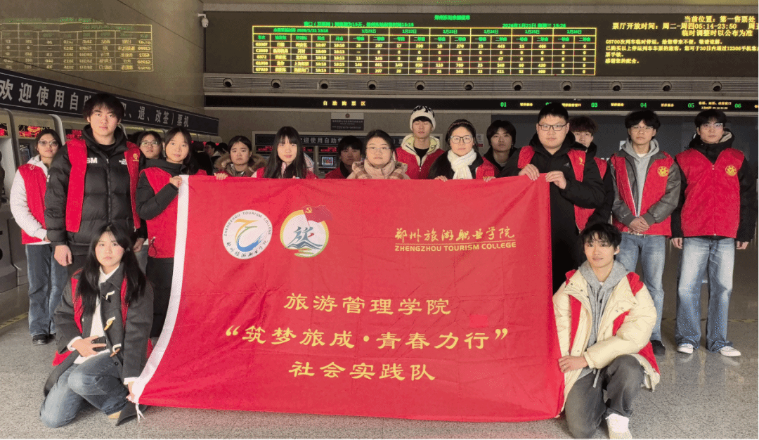 旅游管理学院聚焦春运保障重点任务,在郑州东站开展“温暖回家路”志愿服务活动,为过往旅客提供车次咨询、行李帮扶、引导分流等便民服务,用热情缓解了春运压力,温暖了旅客的归途。