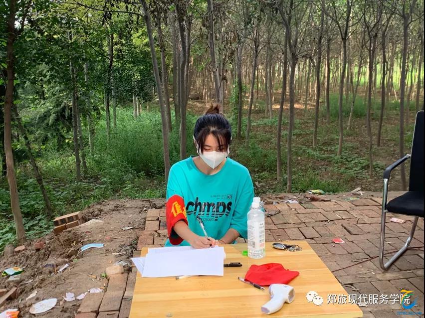 她主要负责严守村口,严查外来人员,严进严出,每一个车辆都严格把关,查看来往人员健康码,测量体温,进行登记,这一套步骤每天要重复好多遍,但她从未有懈怠,认真坚守在防疫岗位上。与此同时,她还主动宣传疫情防控知识,加强村民的自我保护意识。在做志愿服务的这段时间,最无法抵抗的就是蚊虫叮咬和太阳暴晒,这让她想到那些医护人员,奋战在抗“疫”一线的白衣天使更为不易。