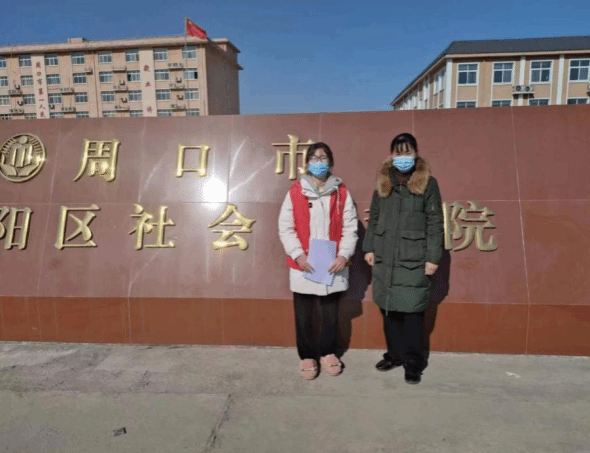 在这个寒假中,刘路路同学在周口市淮阳区社会福利院里参加了社会实践活动。在这五天的时间里,她陪伴着和自己没有血缘关系的老人们,陪他们聊天,和他们一起吃饭、下棋……她看到了老人们的脸上因她而洋溢起的笑容,这种笑容是发自内心的,刘路路同学也感觉无比光荣与快乐。