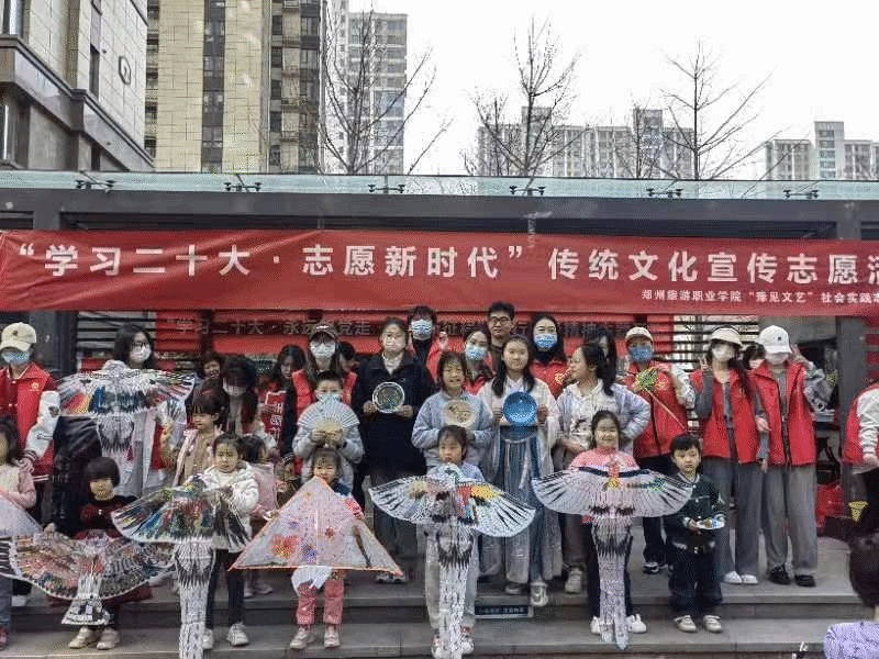 3月5日上午,文化艺术学院团总支书记冯思源带领志愿者走进中牟县建业·春天里社区,开展“学院进社区志愿服务”活动。投壶、射箭、手绘风筝、折扇、剪纸及沉浸式体验扎染等多项活动项目受到小朋友们一致好评。中华优秀传统文化不断地从各个方面悄无声息的渗透社会,走进生活,融入时代,从而达到促进中华优秀传统文化继承、发展、创新及增强人们的文化自信、文化意识及家国情怀。
