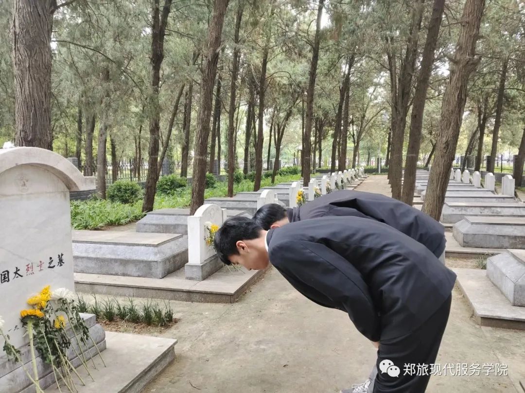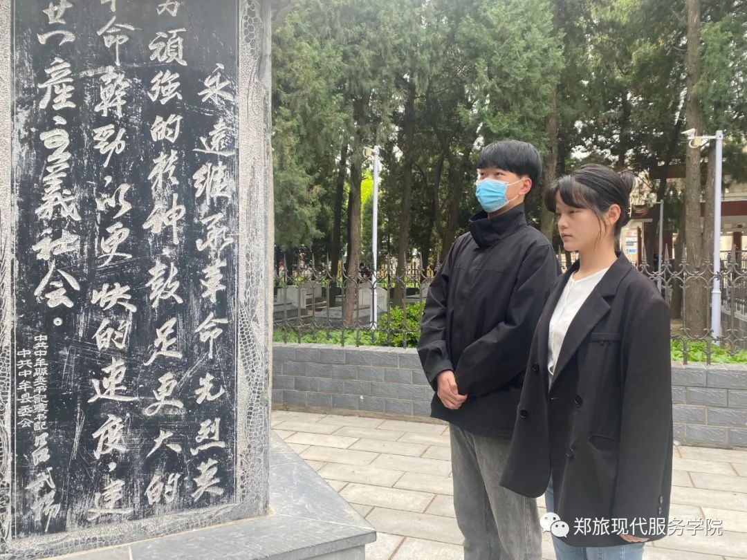 2023年4月5日,现代服务学院开展“祭奠英烈、扫墓踏青”活动。在团总支学生干部的带领下全体同学肃立,向先烈默哀,以此表达对烈士的敬仰和缅怀,最后全体团员井然有序的参观中牟县烈士陵园,赓续红色血脉。