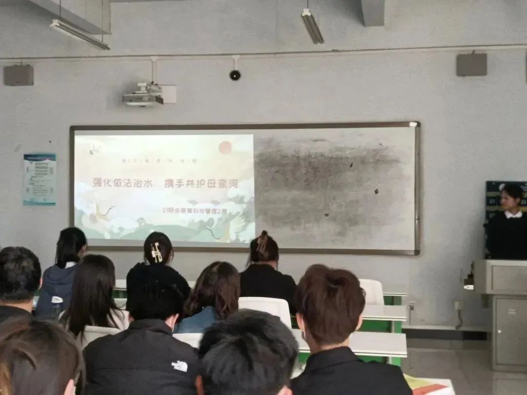 为倡导珍惜水资源、保护水资源,培养学生节水意识,不断提高校园水资源利用效率。现代服务学院各班学生于2023年3月27日于1A教学楼开展“强化依法治水,携手共护母亲河”主题班会。