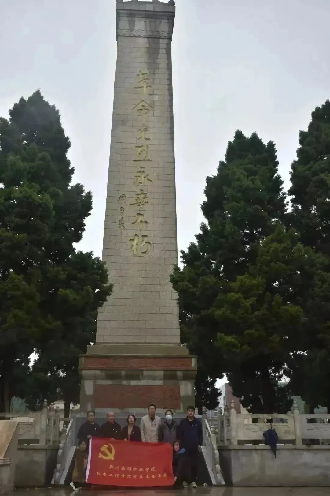 4月3日,机电工程学院教工支部组织全体党员教师到中牟县烈士陵园开展“传承红色基因·清明祭英烈”活动。在中牟县烈士陵园的革命烈士纪念碑前,全体人员致默哀礼,向革命先烈深切缅怀、寄托哀思,表达对革命先烈无私高尚人格的尊崇和勇于牺牲精神的敬仰。