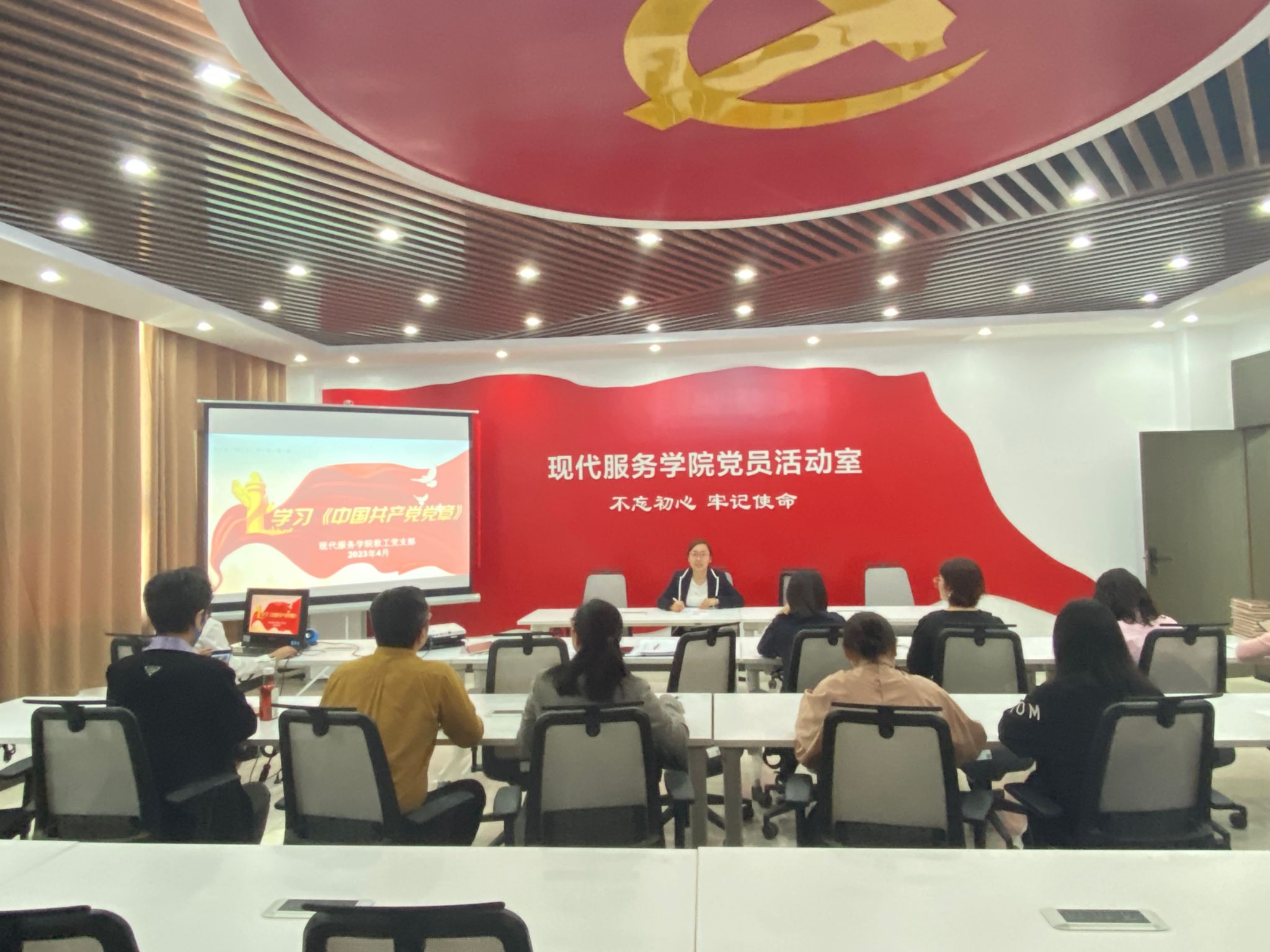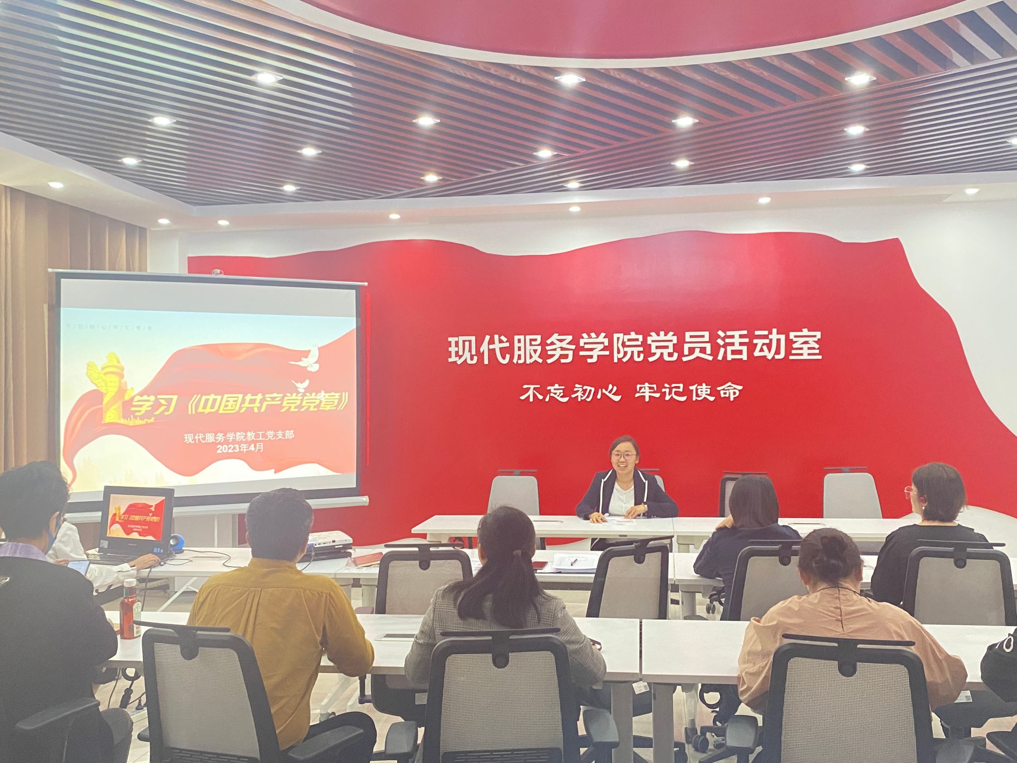 为深入学习宣传贯彻党的二十大精神,让全体党员同志深刻把握党章各项修改的科学内涵和重大意义,现代服务学院教工党支部在4月20日下午举办党日活动——深入学习《中国共产党党章》,本次活动由教工党支部书记张莹统筹安排,支部全体党员参加。