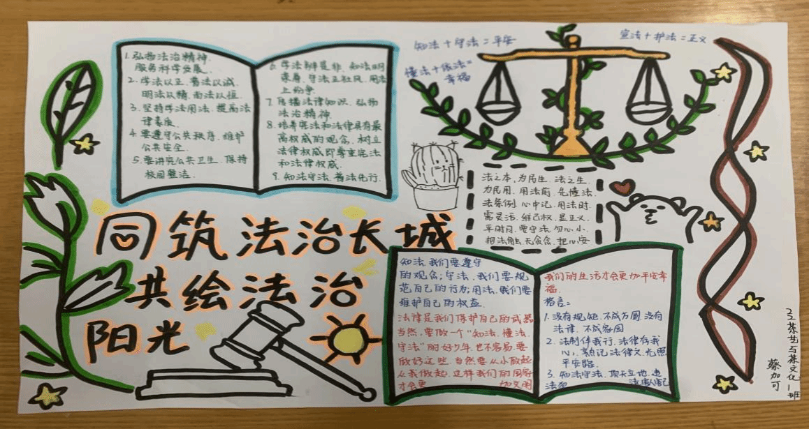 本次海报比赛通过让大家从行动上和思想上了解法律法规,从内心深处形成用法律保护自己的安全维护自己的利益意识,真正达到理论与实践相结合的效果。海报主题围绕法律、法规、如何用正确保护自己的合法权益展开,展示班级共同学习的成果提高学生对了解法治的积极性,了解到更多的法治内容与标识,使法治深入人心。