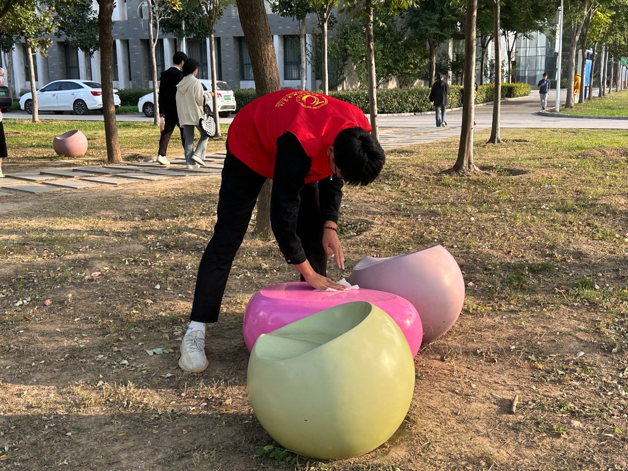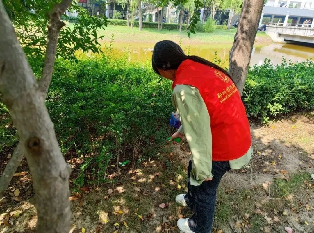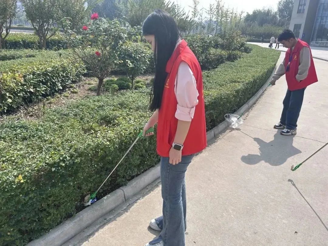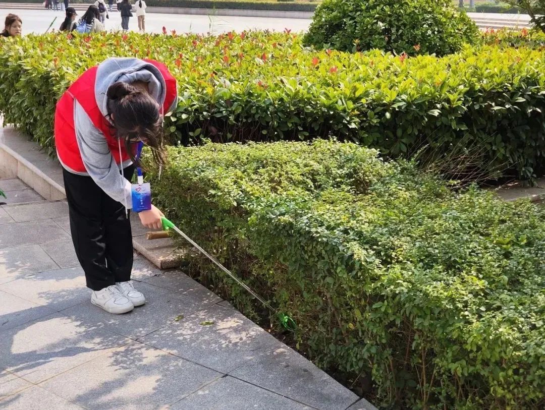 志愿者们分为四个小组,分别对校园绿地、路面进行全面的垃圾清理。在活动过程中,同学们热情洋溢、态度积极,一手垃圾袋,一手垃圾钳,认真的拾捡绿地内积存的垃圾,也构成了校园里一道别样的风景线。