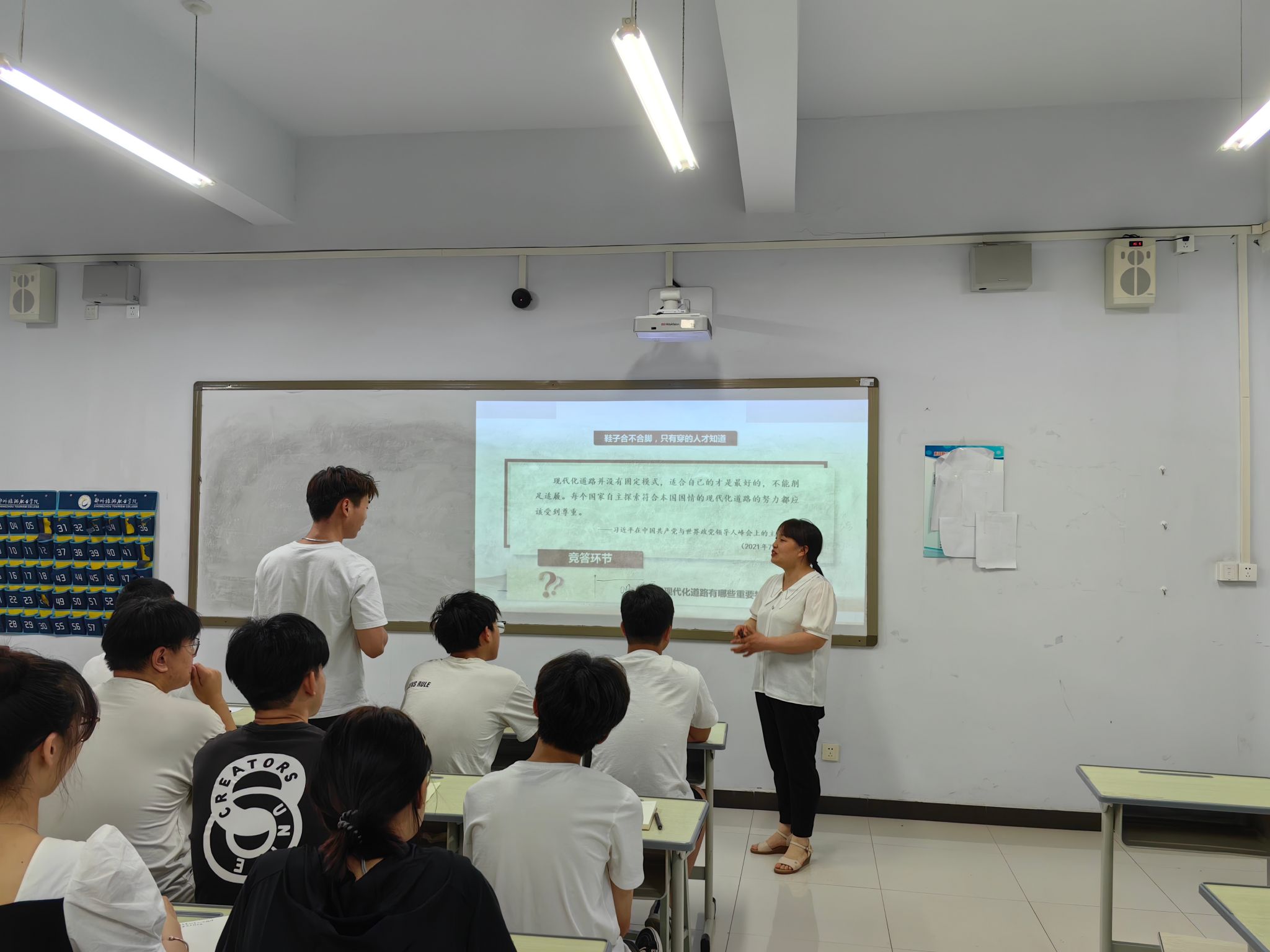 汤云飞老师分别从“中国式现代化的重要特征”、“习近平生态文明思想的主要内容”和“如何践行美丽中国”三方面来开展此次讲座,课堂开始前汤云飞老师抛出“中国式现代化道路有哪些重要特征”这一问题深刻诠释了中国式现代化的重要特征。在党的十八大以来,习近平总书记强调,要坚持人与自然和谐共生,坚持节约优先、保护优先、自然恢复为主的方针,像保护眼睛一样保护生态环境,像对待生命一样对待生态环境;要坚持绿水青山就是金山银山的理念。