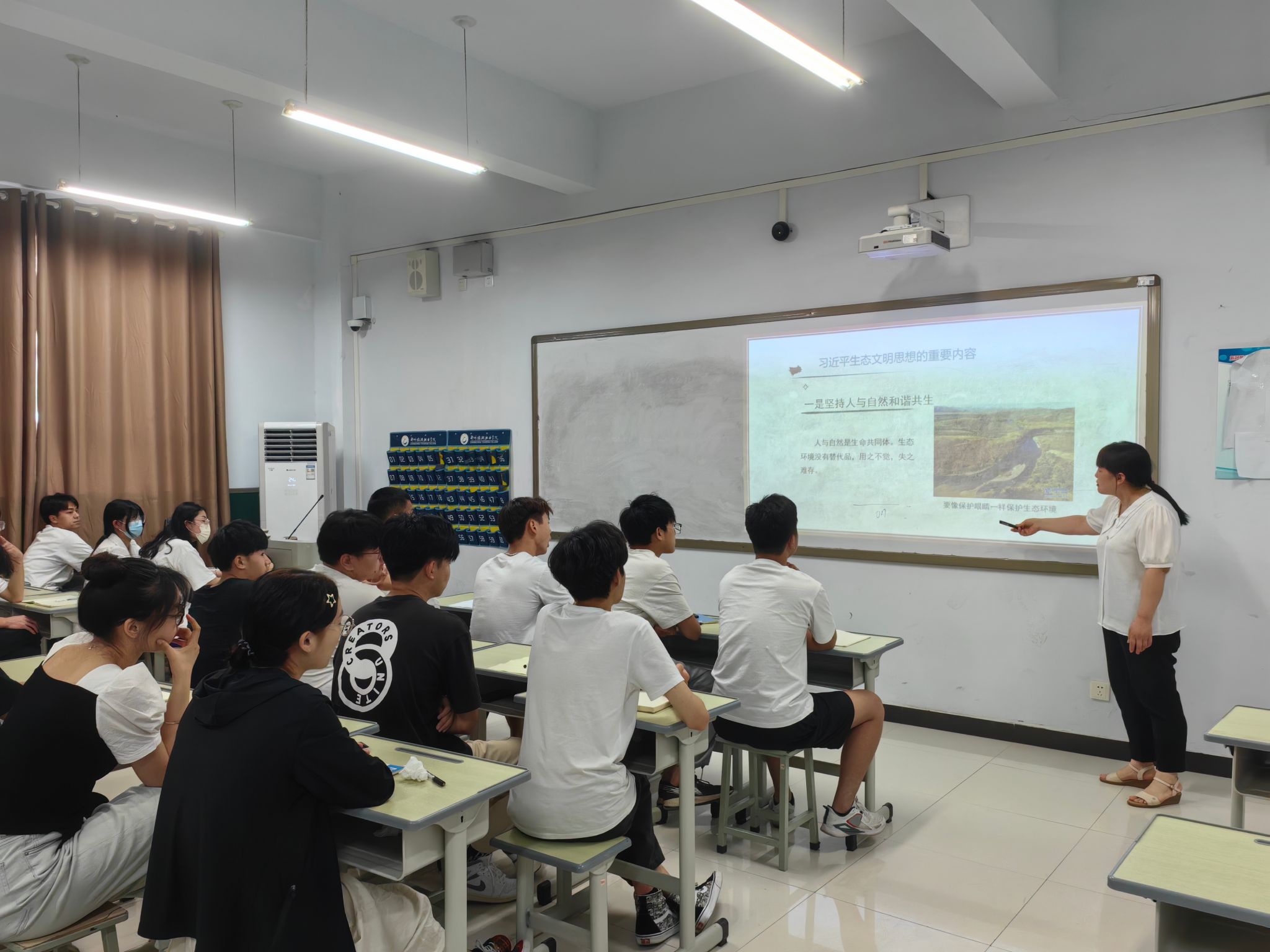 最后汤云飞老师讲到,作为新时代的大学生我们更应该主动承担起责任,这不仅是一种生态文明思想,更是我们新时代青少年的责任。本次讲座的开展使同学们更加重视生态环境的发展,也愿意从身边小事做起,守护碧水蓝天、为建设美丽中国付诸行动。