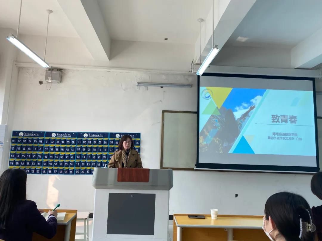 2021年4月8日下午15时,旅游外语学院响应学校号召,在教学楼211组织开展了“领导干部进课堂,上好一节思政课”活动。本次思政课由旅游外语学院党总支书记白娜担任主讲人,辅导员刘平平老师,刘好好老师,务婧博老师,沈晋旭老师以及青马工程学员,入党积极分子和19,20级团学干部听取了讲座。