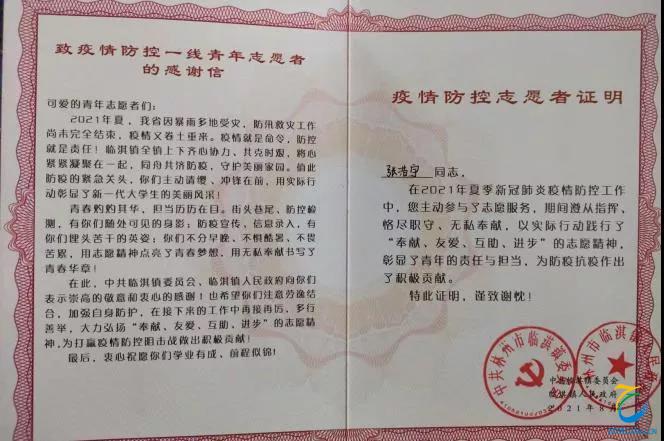 秉持着“有一分热,发一分光”的理念,我积极报名参加村里的防疫志愿者服务工作,投入到这场没有硝烟的战斗之中。