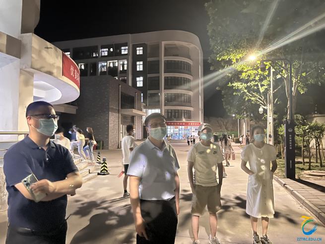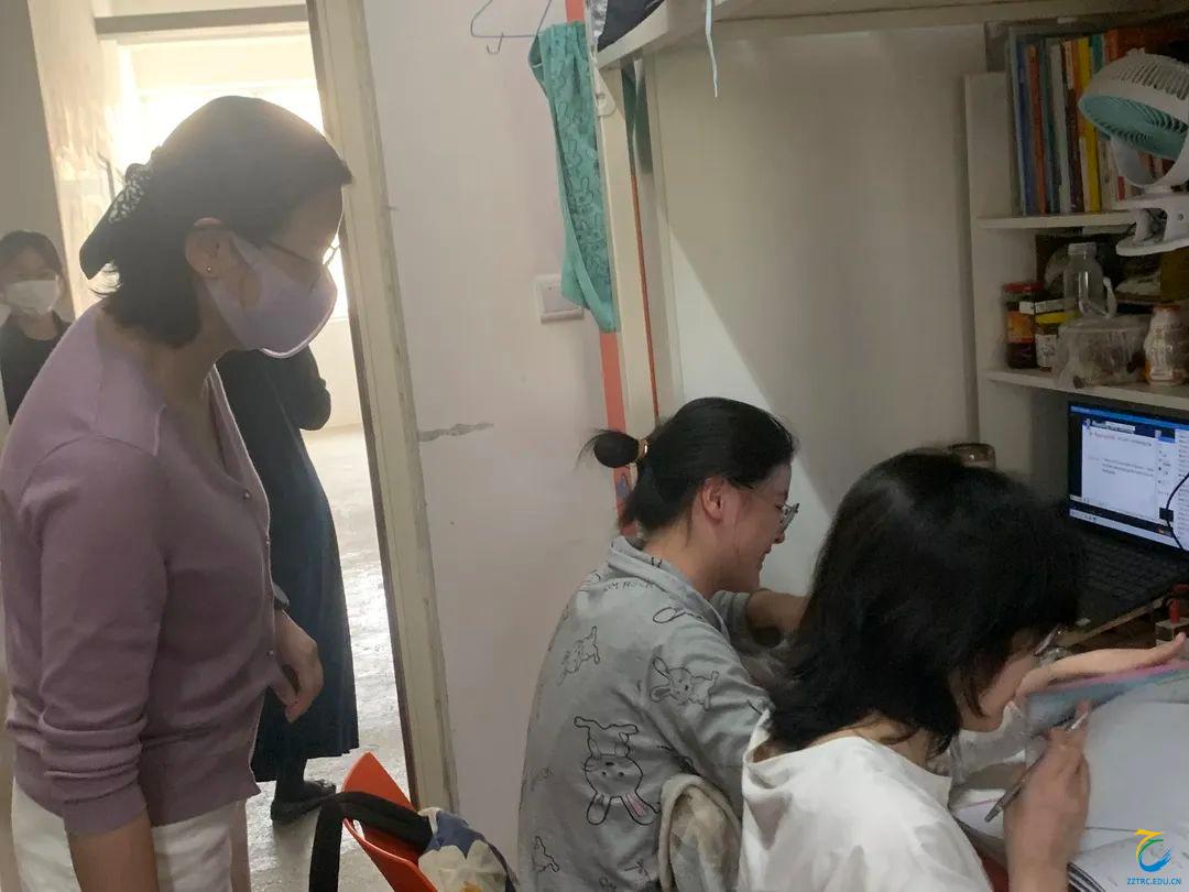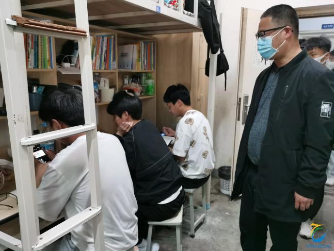 线上会议结束并部署完相关工作之后,秦合岗书记、张楗让副书记立刻带领张卿颜、王滔水老师前往宿舍给学生干部们召开会议,9点多又开始走访宿舍,查看学生生活状况。之后的几天里,他们都坚持检查宿舍通风消杀工作、关心学生心理状况,并与李俊院长、张东月副院长一起检查学生在宿舍上网课的情况。