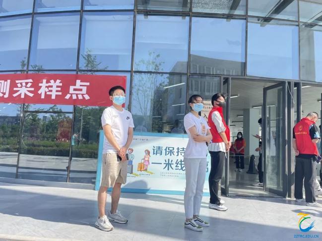 5月4日上午,学院有序开始了全员核酸检测,张卿颜和王滔水老师作为教师志愿者,积极参与学校核酸检测的志愿服务工作中。面对疫情,他们坚守在校园,在核酸检测现场,他们认真负责。