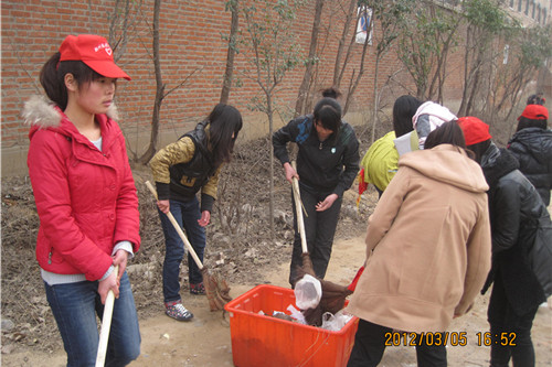 2012年3月5日下午旅游管理系青年志愿者在院团委青年志愿者协会的组织下于校园、社区等地开展形式多样的学雷锋活动。