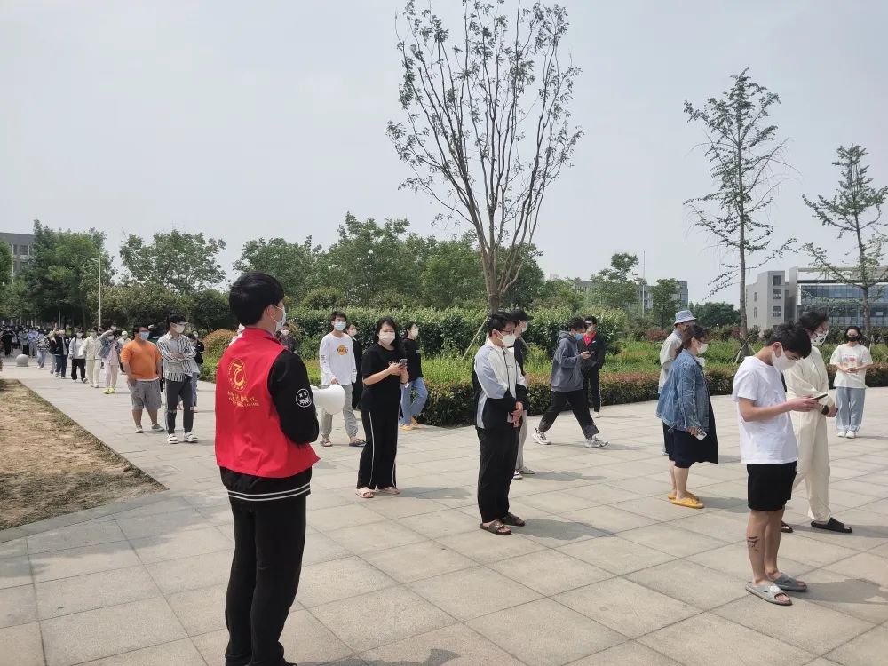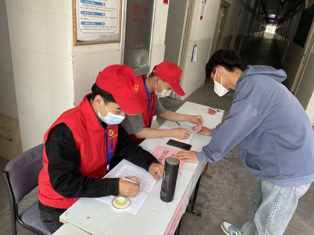 “请戴好口罩,准备好核酸检测登记码,有序排队。”“请大家主动扫码,保持两米间距。”“午餐和水送到了,请大家开门取餐。”“请大家把宿舍垃圾放在门口,志愿者一会儿去取。”……在2号宿舍楼被封控期间,党团先锋志愿者每天从早上7点到晚上20点,组织楼内学生做核酸,送饭送水,倒垃圾。在党团先锋志愿者的帮助下,3B女生宿舍和4B男生宿舍外出排队的学生有条不紊地测试体温、登记信息,有效提高了核酸采样效率,外出情况统计准确率。不仅封控楼的学生基本生活得到了保障,而且生活区男女生宿舍楼的日常管理和疫情防控工作有条不紊、安全高效地有序推进中。
