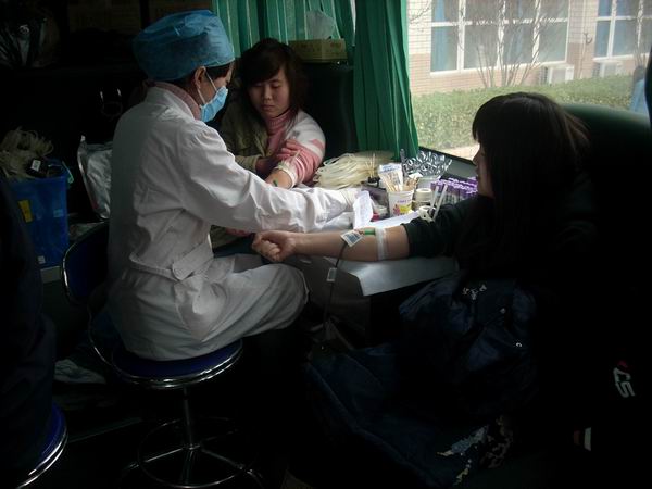 爱心社和青年志愿者协会的同学们积极的开展了关于义务献血的宣传,截止到2月27日报名参加此次活动的人数已经达到1000人,其中一些同学还曾经有过义务献血的经历。