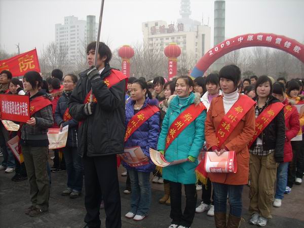 此次活动主办单位有:中共河南省委宣传部、河南省军区政治部、共青团河南省委、河南省公安厅、河南省卫生厅和河南省广电局。到达现场的除了一些企事业单位外,还有部分高校的青年志愿者们,我院200名青年志愿者在院团委老师的带领下参加了此次活动。活动主要分为三大项:一是大型文艺演出,二是领导讲话,三是万人同唱雷锋歌。优美的舞蹈拉开了活动的帷幕,接着便是一系列精彩的歌舞戏剧表演,著名歌手周彦宏的演唱将现场气氛拉响了高潮。此外,梨园春的一些擂主们也亲临现场,激情演出。